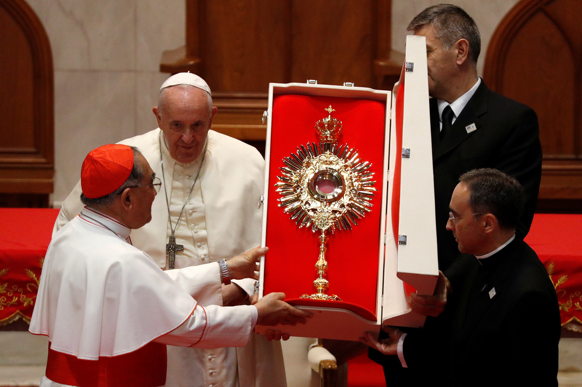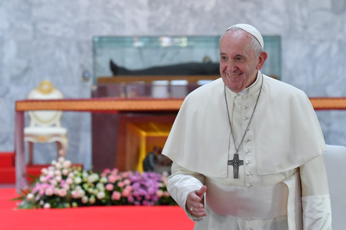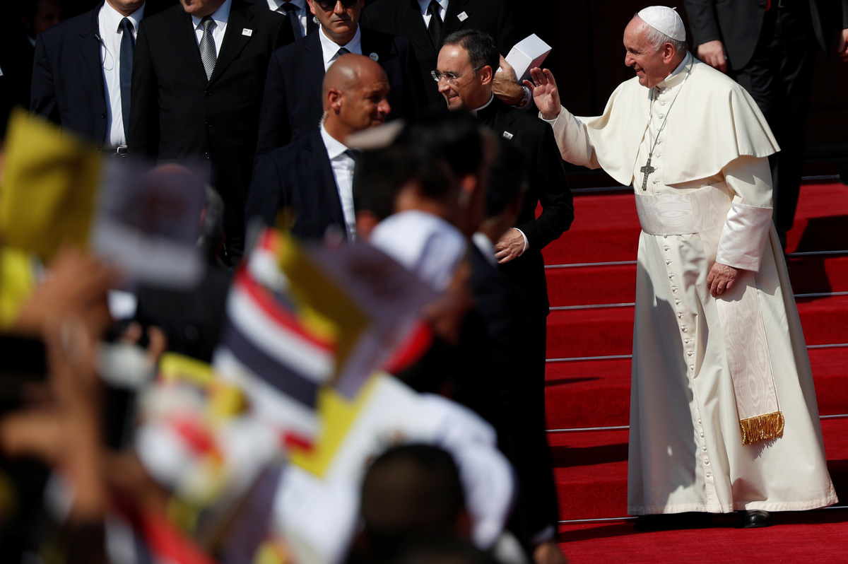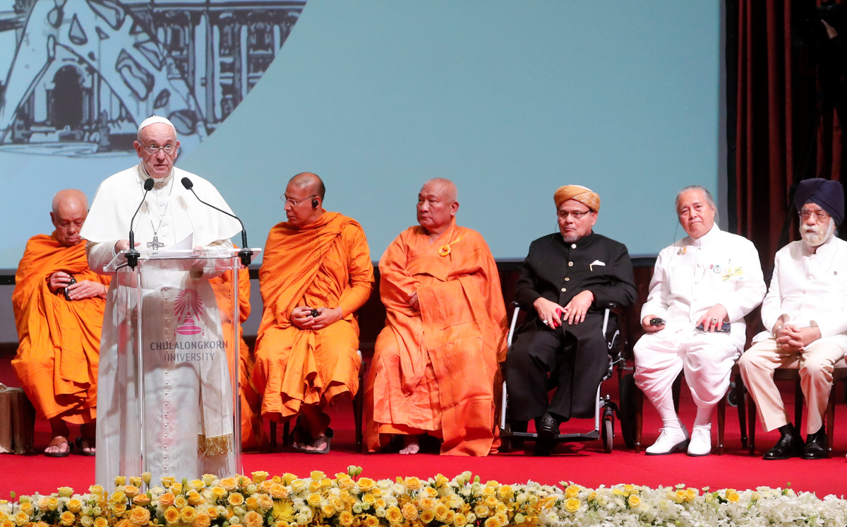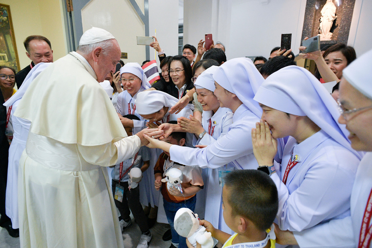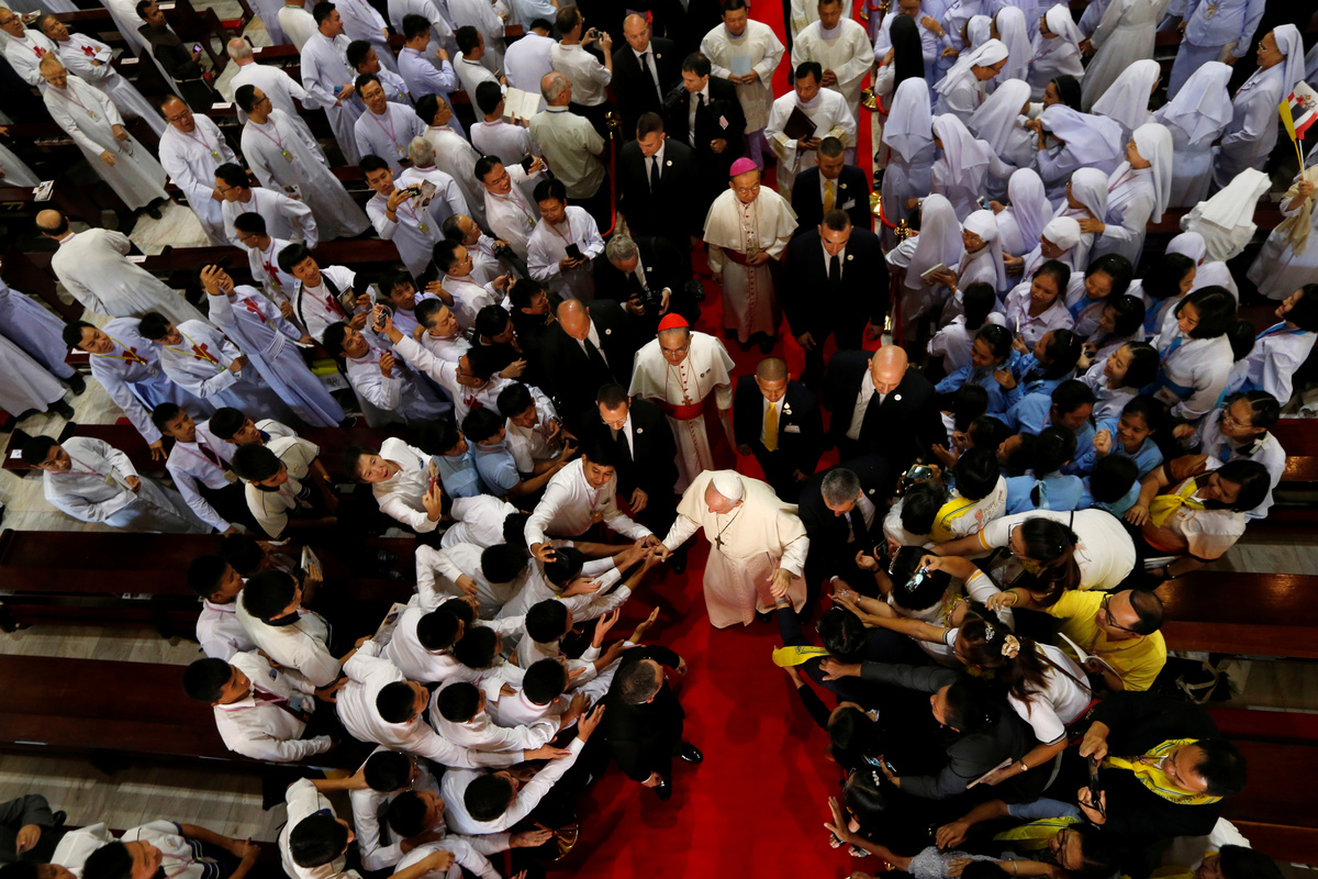 People are seen as Pope Francis arrives to conduct a Holy Mass at the Assumption Cathedral in Bangkok, Thailand, November 22, 2019. REUTERS/Jorge SilvaPope Francis holds a Holy Mass at the Assumption Cathedral in Bangkok, Thailand, November 22, 2019. REUTERS/Remo CasilliPope Francis arrives to conduct a Holy Mass at the Assumption Cathedral in Bangkok, Thailand, November 22, 2019. REUTERS/Jorge SilvaPope Francis waves from the pope mobile as he arrives to conduct a Holy Mass at the Assumption Cathedral in Bangkok, Thailand, November 22, 2019. REUTERS/Jorge SilvaPope Francis meets religious leaders at the Chulalongkorn University in Bangkok, Thailand, November 22, 2019. REUTERS/Remo CasilliA school band waits before Pope Francis arrives to conduct a Holy Mass at the Assumption Cathedral in Bangkok, Thailand, November 22, 2019. REUTERS/Jorge SilvaPope Francis speaks during a meeting with religious leaders at the Chulalongkorn University in Bangkok, Thailand, November 22, 2019. REUTERS/Remo CasilliPope Francis waves to the crowd following his visit to St. Peter's Parish church in the Sam Phran district of Nakhon Pathom Province, Thailand, November 22, 2019. REUTERS/Ann WangWomen pose with a cardboard depicting Pope Francis before he arrives to conduct a Holy Mass at the Assumption Cathedral in Bangkok, Thailand, November 22, 2019. REUTERS/Jorge SilvaPope Francis and his cousin Sister Ana Rosa Sivori exchange gifts with Thailand's King Maha Vajiralongkorn and Queen Suthida during his visit to Bangkok, Thailand, November 21, 2019. Thailand Royal Household/Handout via REUTERS Pope Francis meets with Thailand's King Maha Vajiralongkorn and Queen Suthida during his visit to Bangkok, Thailand, November 21, 2019. Thailand Royal Household/Handout via REUTERS A devotee prays as Pope Francis visits St. PeterÕs Parish church in the Sam Phran district of Nakhon Pathom Province, Thailand, November 22, 2019. REUTERS/Ann WangPope Francis waves to the crowd following his visit to St. Peter's Parish church in the Sam Phran district of Nakhon Pathom Province, Thailand, November 22, 2019. REUTERS/Ann WangThai Bishop Joseph Prathan Sridarunsil kisses the hand of Pope Francis during the latter's visit to St. Peter’s Parish church in the Sam Phran district of Nakhon Pathom Province, Thailand, November 22, 2019. REUTERS/Remo CasilliPope Francis visits St. Peter’s Parish church in the Sam Phran district of Nakhon Pathom Province, Thailand, November 22, 2019. REUTERS/Jorge SilvaA view of St. Peter's Parish church in the Sam Phran district of Nakhon Pathom Province, Thailand, during Pope Francis' visit November 22, 2019. REUTERS/Soe Zeya TunDevotees hold Thai flags as Pope Francis visits St. Peter’s Parish church in the Sam Phran district of Nakhon Pathom Province, Thailand, November 22, 2019. REUTERS/Ann WangPope Francis speaks at a meeting with cardinals and bishops at the Blessed Nicholas Boonkerd Kitbamrung Shrine in Bangkok, Thailand, November 22, 2019. REUTERS/Remo CasilliAn image of Pope Francis is seen during his visit to St. Peter's Parish church in the Sam Phran district of Nakhon Pathom Province, Thailand, November 22, 2019. REUTERS/Soe Zeya TunPope Francis visits St. Peter's Parish church in the Sam Phran district of Nakhon Pathom Province, Thailand, November 22, 2019. REUTERS/Soe Zeya TunPope Francis visits St. Peter's Parish church in the Sam Phran district of Nakhon Pathom Province, Thailand, November 22, 2019. REUTERS/Soe Zeya TunA devotee holding a Thai flag peers through glass panels after Pope Francis walked into St. Peter’s Parish church in the Sam Phran district of Nakhon Pathom Province, Thailand, November 22, 2019. REUTERS/Ann WangPope Francis visits St. Peter's Parish church in the Sam Phran district of Nakhon Pathom Province, Thailand, November 22, 2019. REUTERS/Soe Zeya TunPope Francis speaks during his visit to St. Peter's Parish church in the Sam Phran district of Nakhon Pathom Province, Thailand, November 22, 2019. REUTERS/Soe Zeya TunDevotees greet Pope Francis as he visits St. Peter's Parish church in the Sam Phran district of Nakhon Pathom Province, Thailand, November 22, 2019. REUTERS/Soe Zeya TunDevotees greet Pope Francis as he visits St. Peter's Parish church in the Sam Phran district of Nakhon Pathom Province, Thailand, November 22, 2019. REUTERS/Soe Zeya TunPope Francis visits St. Peter's Parish church in the Sam Phran district of Nakhon Pathom Province, Thailand, November 22, 2019. REUTERS/Soe Zeya Tun