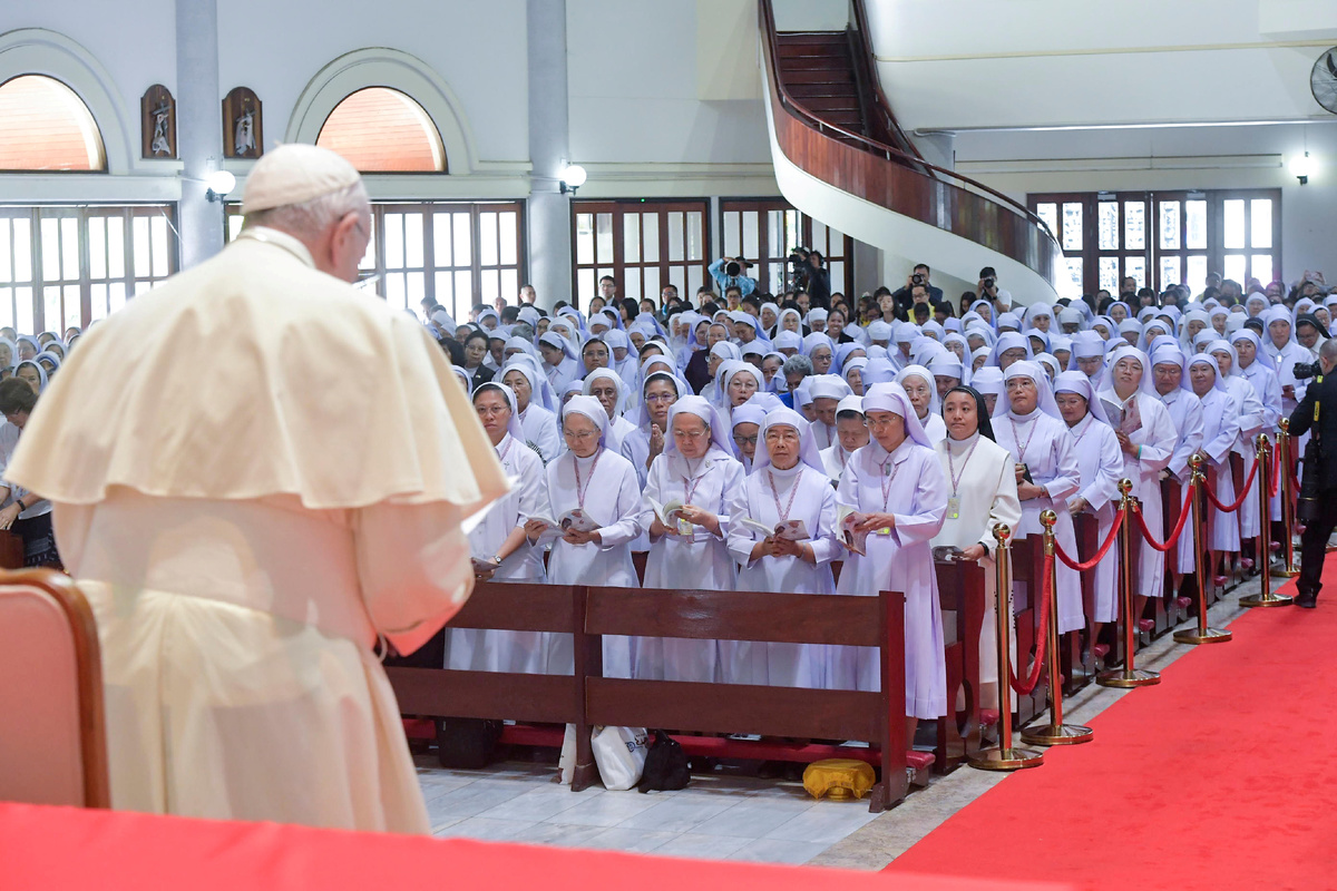 Pope Francis attends a meeting with priests, religious, seminarians and catechists in St Peter's Parish in Bankgok, Thailand November 22, 2019. Vatican Media/Handout via REUTERS
