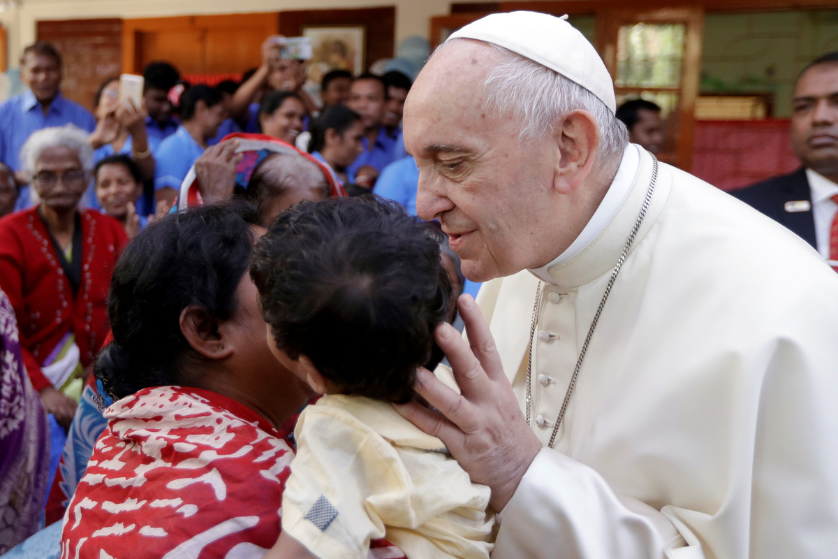 On the last day of his three-day visit to Bangladesh, which came after meetings in Buddhist-majority Myanmar, the pope went to a home in Dhaka founded by Mother Teresa for orphans, unwed mothers and destitute elderly.