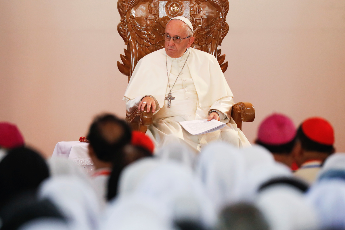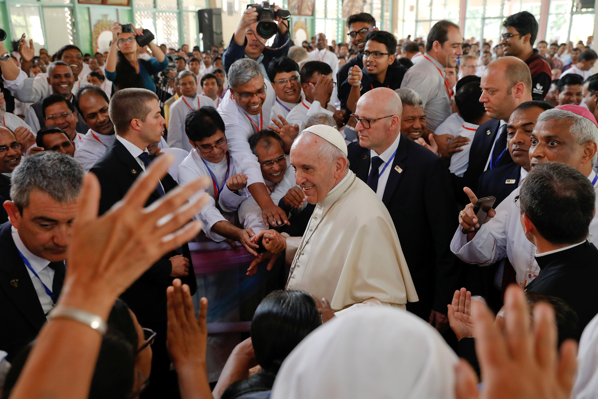 The pope made an impromptu address to nuns and priests at the home during which he praised Bangladesh, a Muslim-majority country where Catholics make up less than one percent of its around 169 million people, for having what he called some of the best inter-religious relations in the world.