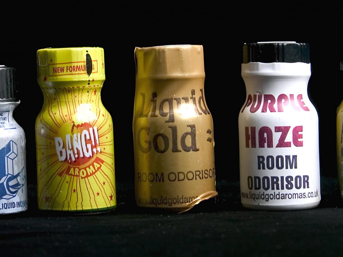 With names including Buzz, Rush, Deep and Hard On, these are poppers – alkyl nitrites in liquid form that cause a head-rush when inhaled and were banned by the Government this week.