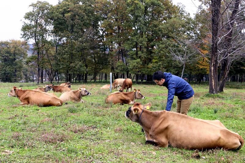At Shinrinno Bokujo ranch in Nasu, Tochigi Prefecture, cows are languidly grazing in the pasture. Most dairy cows in Japan are Holsteins, which produce a lot of milk. However, this ranch raises Jerseys, which are known for the richness of their milk.
