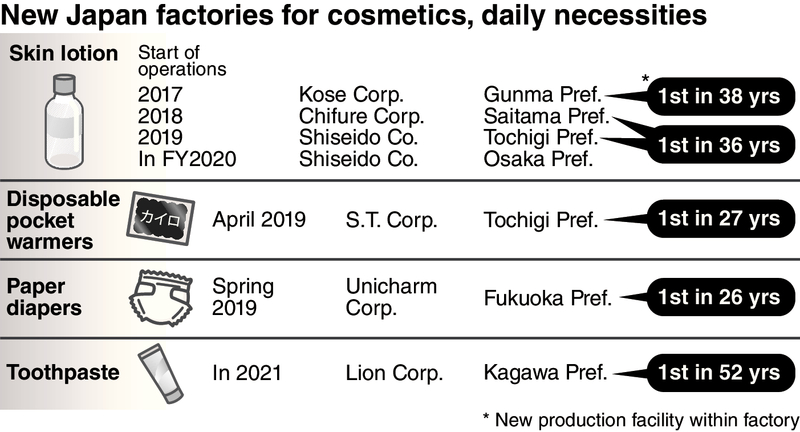 Some Japanese companies are building domestic factories for the first time in decades. Lion Corp., for example, will start constructing a new toothpaste plant in Kagawa Prefecture this year, aiming to start operations in 2021.