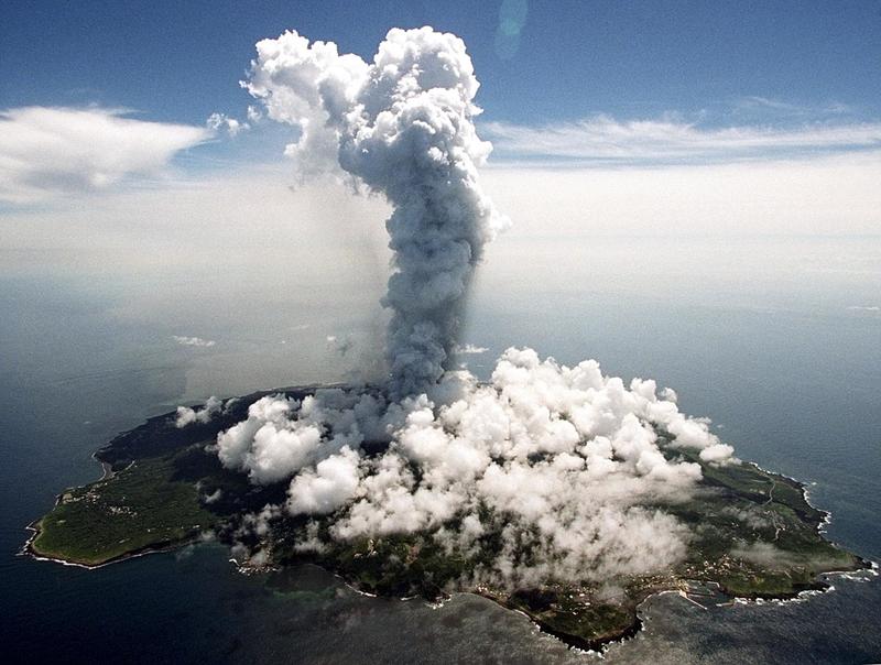 Miyakejima island is itself a volcano that has erupted repeatedly at intervals of about 20 years since the Showa era (1926-1989). In the most recent eruption in 2000, there was an increase in volcanic earthquakes starting in June and small eruptions of Mt. Oyama in the center of the island started in July. A massive eruption occurred on Aug. 18, with its plume reaching 14,000 meters into the air.