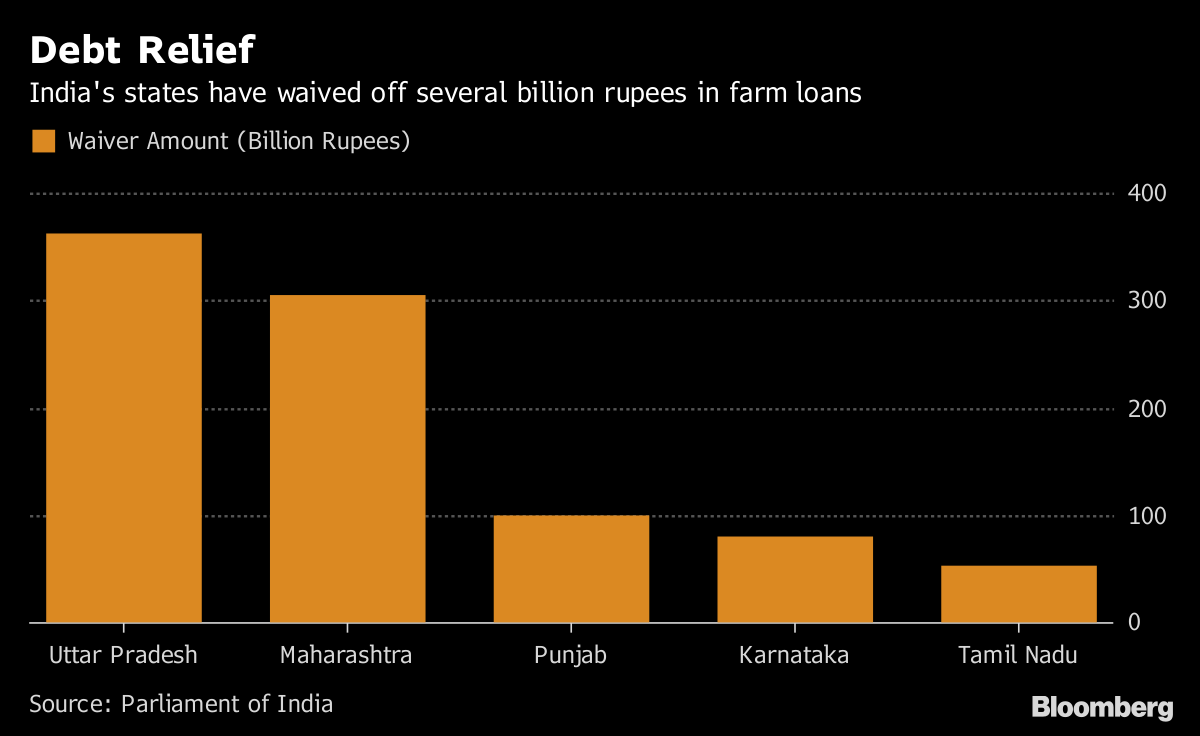 The Indian National Congress made good on its election promise by waiving some loans owed by farmers in three states that it won last week from Prime Minister Narendra Modi’s Bharatiya Janata Party. Assam, a state in India’s northeast ruled by the BJP, followed suit.