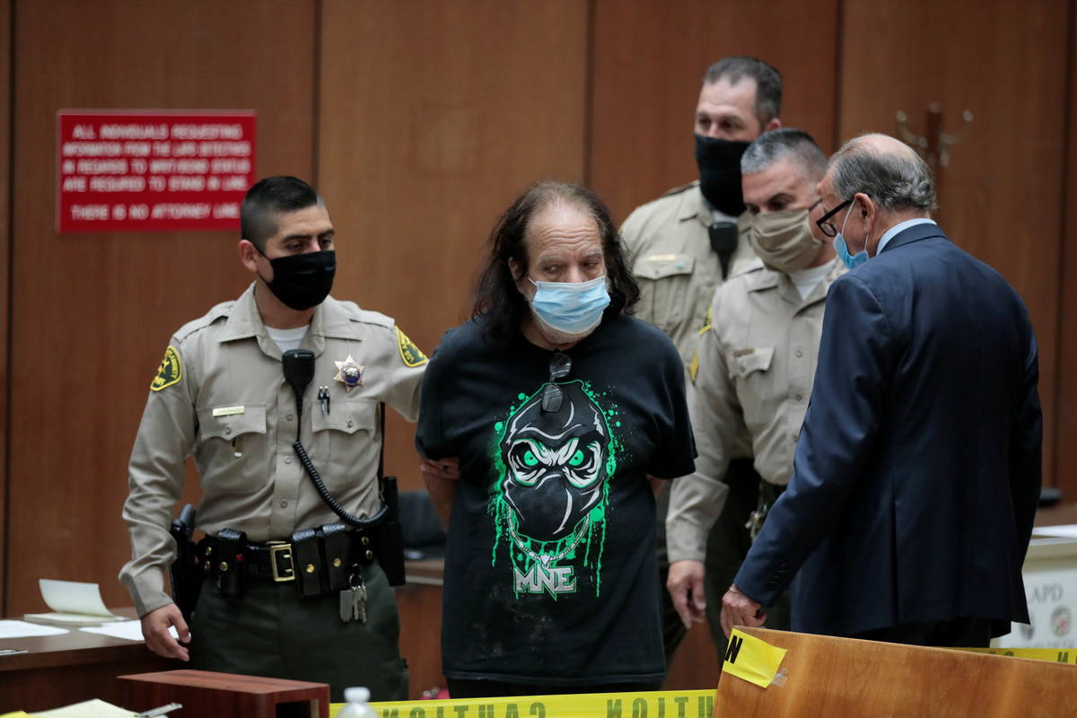 Adult film star Ron Jeremy, who has been charged with raping three women and sexually assaulting a fourth in incidents in West Hollywood from 2014 to 2019, makes his first appearance in Los Angeles County Superior Court, California, U.S. June 23, 2020. Robert Gauthier/Pool via REUTERSAdult film star Ron Jeremy, who has been charged with raping three women and sexually assaulting a fourth in incidents in West Hollywood from 2014 to 2019, makes his first appearance in Los Angeles County Superior Court, California, U.S. June 23, 2020. Attorney Stuart Goldfarb is at right. Robert Gauthier/Pool via REUTERSFILE PHOTO - Adult film star Ron Jeremy pauses during an interview with Reuters in New York February 7, 2007. REUTERS/Brendan McDermid FILE PHOTO: Adult film star Ron Jeremy speaks during an interview with Reuters in New York February 7, 2007. REUTERS/Brendan McDermid/File Photo