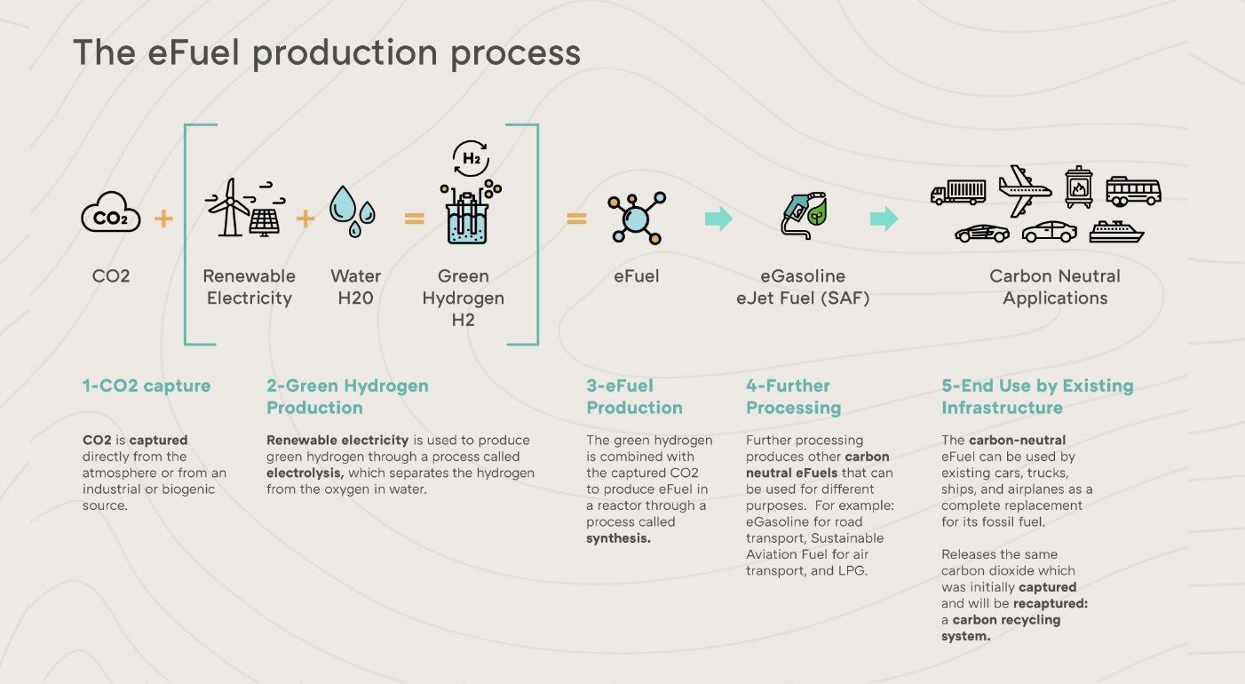 The "e" is at the front because renewable electricity is used to create the fuel.