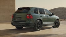 The E1-generation Cayenne has been resprayed in Blackolive, a paint-to-sample color contrasted by matte black accents. According to Porsche, American owner Phillip Sarofim wanted to give his posh SUV a 1970s vibe and even asked for a towbar to be retrofitted. You’ll also spot the all-terrain tires, a fitting upgrade given how the original Cayenne proved competent off the beaten path thanks to a low-range transfer case and a locking rear differential.