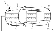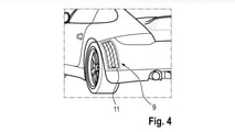 The images also show using the film for stripes behind the rear wheels and on the rear diffuser. The patent also describes using the technology on an electric vehicle to display the car’s charge status right on the exterior.