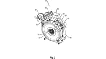By design, the configuration is also said to generate less heat. When coupled with a "cup- or bell-shaped" permeable chamber, as described in the patent, both the electric motor and combustion engine should receive ample cooling.