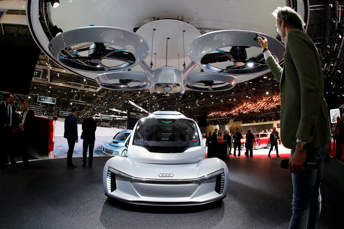 VW's auto designer Italdesign and Airbus exhibited an evolved version of the two-seater flying car called Pop.Up at the Geneva show. It is designed to avoid gridlock on city roads and premiered at the annual industry gathering a year ago.