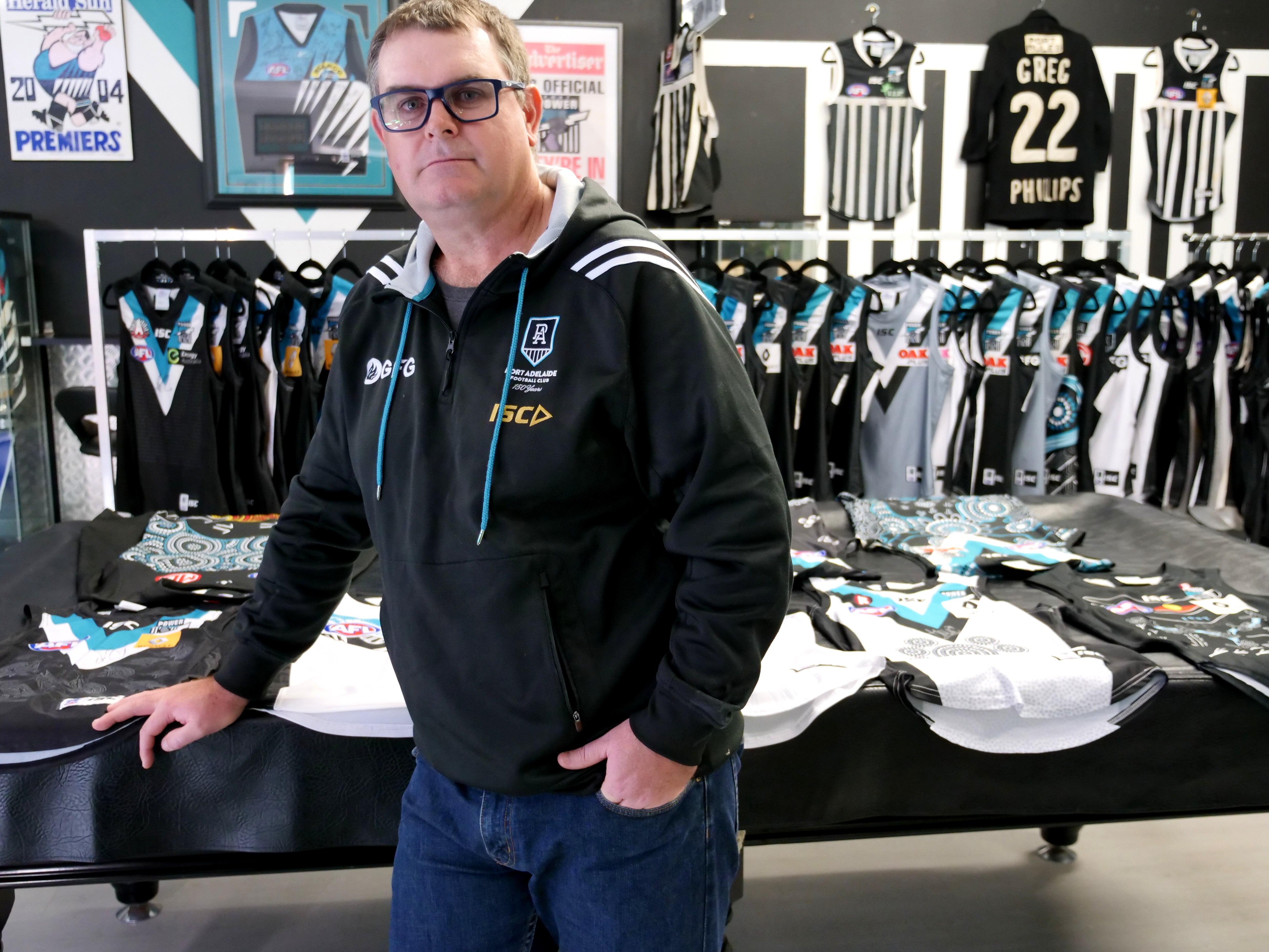 The Whyalla local has spent years building his Port Adelaide Football Club jumper collection.