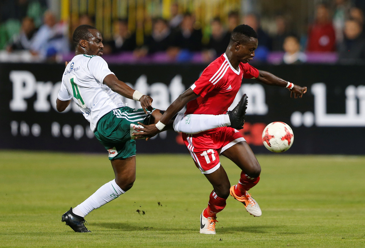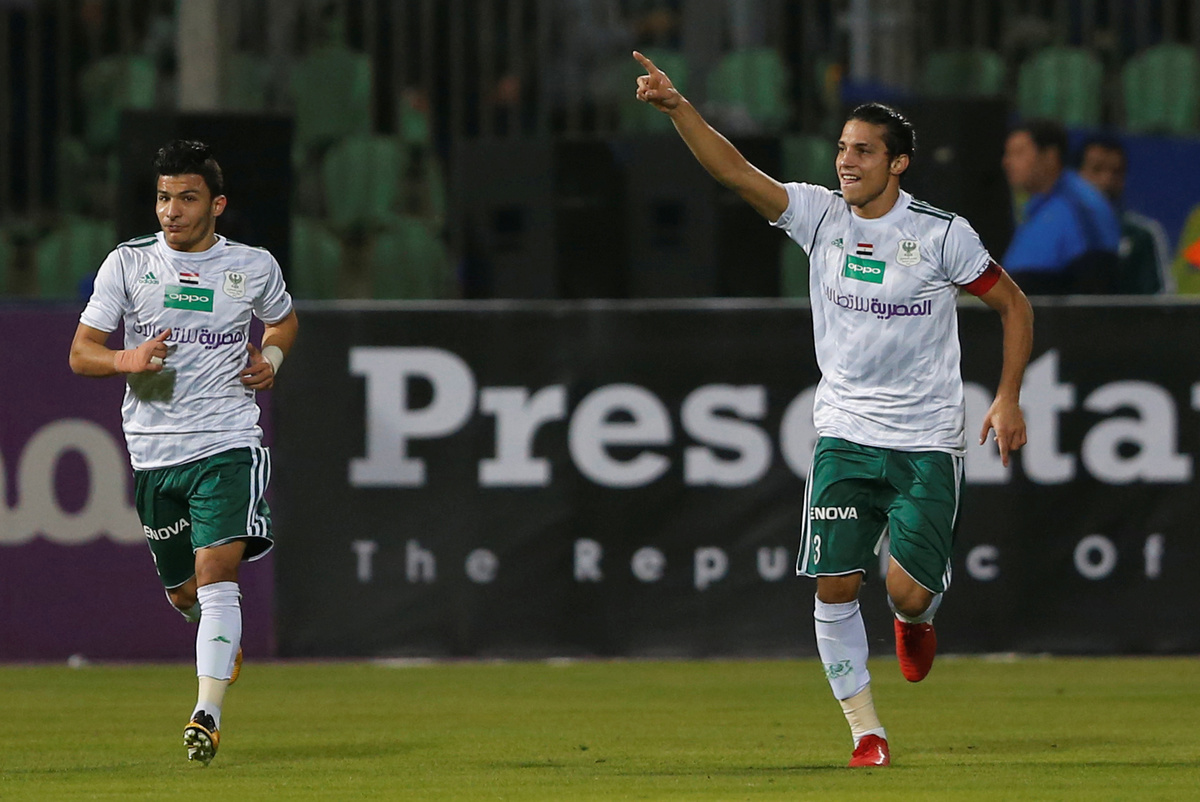 Soccer Football - African Confederation Cup - Al Masry vs Green Buffaloes - Al Masry stadium, Port Said, Egypt- February 10, 2018 General view of Al Masry fans waving falgs outside the stadium before the match REUTERS/Amr Abdallah DalshSoccer Football - African Confederation Cup - Al Masry vs Green Buffaloes - Al Masry stadium, Port Said, Egypt- February 10, 2018 General view outside the stadium before the match REUTERS/Amr Abdallah DalshSoccer Football - African Confederation Cup - Al Masry vs Green Buffaloes - Al Masry stadium, Port Said, Egypt- February 10, 2018 General view of outside the stadium before the match REUTERS/Amr Abdallah DalshSoccer Football - African Confederation Cup - Al Masry vs Green Buffaloes - Al Masry stadium, Port Said, Egypt- February 10, 2018 General view of Al Masry fans before the match REUTERS/Amr Abdallah DalshSoccer Football - African Confederation Cup - Al Masry vs Green Buffaloes - Al Masry stadium, Port Said, Egypt- February 10, 2018 General view of doves being released before the match REUTERS/Amr Abdallah DalshSoccer Football - African Confederation Cup - Al Masry vs Green Buffaloes - Al Masry stadium, Port Said, Egypt- February 10, 2018 Green Buffaloes' Friday Samu in action REUTERS/Amr Abdallah DalshSoccer Football - African Confederation Cup - Al Masry vs Green Buffaloes - Al Masry stadium, Port Said, Egypt- February 10, 2018 Green Buffaloes' Friday Samu in action REUTERS/Amr Abdallah DalshSoccer Football - African Confederation Cup - Al Masry vs Green Buffaloes - Al Masry stadium, Port Said, Egypt- February 10, 2018 Al Masry's Islam Salah celebrates scoring their first goal REUTERS/Amr Abdallah Dalsh