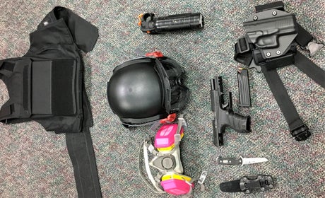 Among the items left behind by the protesters were crowbar, hammers, bear spray, knives and what the department described as a “slugging weapon with rocks.”