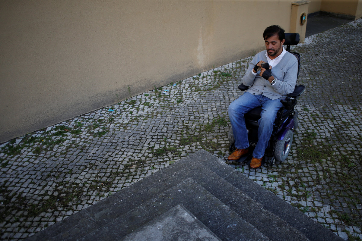 LISBON (Reuters) - Fed up with the obstacle course of Lisbon's narrow footways and stairs in doorways, wheelchair user Ricardo Teixeira has taken matters into his own hands, giving disabled people the chance to fight back and instantly report violations via a phone app.