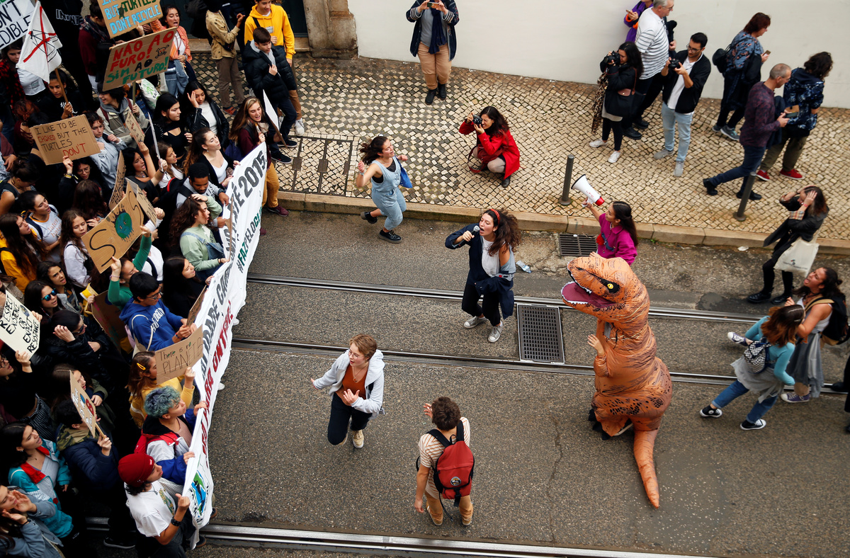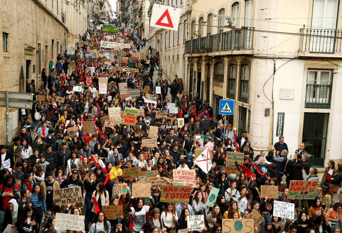 LISBON (Reuters) - Students took to the streets in eight cities across Portugal on Friday to call for action on climate change, but Swedish activist Greta Thunberg was unable to join them because she was held up by bad weather in mid-Atlantic.