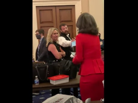 Newly elected Georgia Rep. Marjorie Taylor Greene, a presidential ally aligned with a pro-Trump conspiracy group, was among those Republicans not wearing masks.
