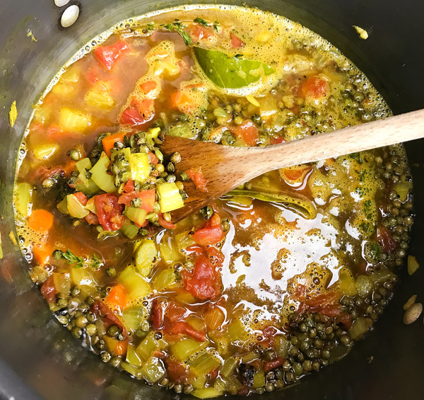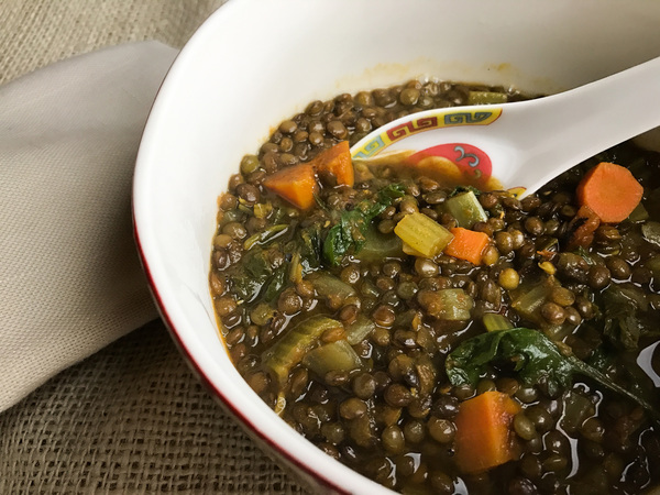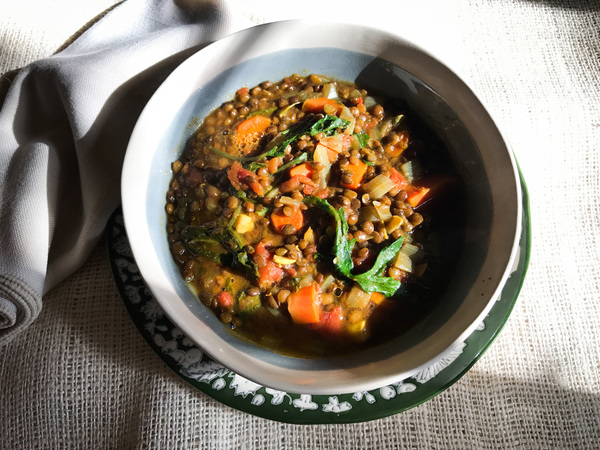 It's a soup that can be all things to all people _ or at least many kinds of people. It's vegan. (Consider it for a meatless Monday!) It's gluten-free. The only processed ingredients are minimally processed (a can of tomatoes and the ground spices), so it's very clean. It's extremely forgiving and versatile. Want to add some chopped broccoli or cauliflower, diced turnips, or last night's leftover Brussels sprouts? Go ahead. It's infinitely riff-able.