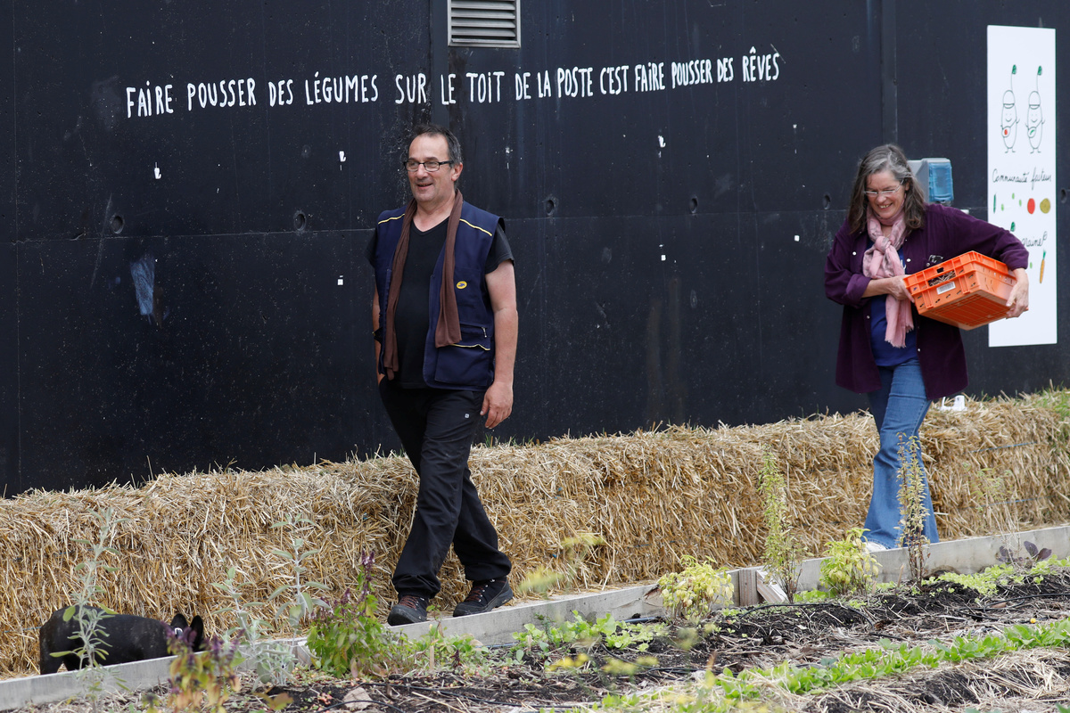 Post office employees work on a 900 square meters farm garden on the rooftop of their postal sorting center, as part of a project by Facteur Graine (Seed Postman) association to transform a city rooftop as a vegetable garden to grow fruits, vegetables, aromatic and medicinal plants, with also chickens and bees in Paris, France, September 22, 2017. The slogan reads "to grow vegetables on the rooftop of the post office is to grow dreams." Picture taken September 22, 2017. REUTERS/Charles PlatiauSophie Jankowski, President of "Seed Postman" association, works on a 900 square meters farm garden on the rooftop of their postal sorting center, as part of a project by Facteur Graine association to transform a city rooftop as a vegetable garden to grow fruits, vegetables, aromatic and medicinal plants, with also chickens and bees in Paris, France, September 22, 2017. Picture taken September 22, 2017. REUTERS/Charles PlatiauPost office employees work on a 900 square meters farm garden on the rooftop of their postal sorting center, as part of a project by Facteur Graine (Seed Postman) association to transform a city rooftop as a vegetable garden to grow fruits, vegetables, aromatic and medicinal plants, with also chickens and bees in Paris, France, September 22, 2017. Picture taken September 22, 2017. REUTERS/Charles PlatiauSophie Jankowski, President of "Seed Postman" association, harvests vegetables on a 900 square meters farm garden on the rooftop of their postal sorting center, as part of a project by Facteur Graine association to transform a city rooftop as a vegetable garden to grow fruits, vegetables, aromatic and medicinal plants, with also chickens and bees in Paris, France, September 22, 2017. Picture taken September 22, 2017. REUTERS/Charles PlatiauPost office employees work on a 900 square meters farm garden on the rooftop of their postal sorting center, as part of a project by Facteur Graine (Seed Postman) association to transform a city rooftop as a vegetable garden to grow fruits, vegetables, aromatic and medicinal plants, with also chickens and bees in Paris, France, September 22, 2017. Picture taken September 22, 2017. REUTERS/Charles PlatiauSophie Jankowski, President of "Seed Postman" association, harvests vegetables on a 900 square meters farm garden on the rooftop of their postal sorting center, as part of a project by Facteur Graine association to transform a city rooftop as a vegetable garden to grow fruits, vegetables, aromatic and medicinal plants, with also chickens and bees in Paris, France, September 22, 2017. Picture taken September 22, 2017. REUTERS/Charles PlatiauBoxes of vegetables is displayed at a 900 square meters farm garden on the rooftop of a postal sorting center, as part of a project by Facteur Graine (Seed Postman) association to transform a city rooftop as a vegetable garden to grow fruits, vegetables, aromatic and medicinal plants, with also chickens and bees in Paris, France, September 22, 2017. Picture taken September 22, 2017. REUTERS/Charles PlatiauPost office employees harvests vegetables on a 900 square meters farm garden on the rooftop of their postal sorting center, as part of a project by Facteur Graine (Seed Postman) association to transform a city rooftop as a vegetable garden to grow fruits, vegetables, aromatic and medicinal plants, with also chickens and bees in Paris, France, September 22, 2017. Picture taken September 22, 2017. REUTERS/Charles PlatiauPoste office employees eat a lunch with products from a 900 square meters farm garden on the rooftop of their postal sorting center, as part of a project by Facteur Graine association to transform a city rooftop as a vegetable garden to grow fruits, vegetables, aromatic and medicinal plants, with also chickens and bees in Paris, France, September 22, 2017. Picture taken September 22, 2017. REUTERS/Charles PlatiauPost office employees pose on a 900 square meters farm garden on the rooftop of their postal sorting center, as part of a project by Facteur Graine (Seed Postman) association to transform a city rooftop as a vegetable garden to grow fruits, vegetables, aromatic and medicinal plants, with also chickens and bees in Paris, France, September 22, 2017. Picture taken September 22, 2017. REUTERS/Charles PlatiauA box of vegetables is displayed at a 900 square meters farm garden on the rooftop of a postal sorting center, as part of a project by Facteur Graine (Seed Postman) association to transform a city rooftop as a vegetable garden to grow fruits, vegetables, aromatic and medicinal plants, with also chickens and bees in Paris, France, September 22, 2017. Picture taken September 22, 2017. REUTERS/Charles PlatiauPost office employees pose on a 900 square meters farm garden on the rooftop of their postal sorting center, as part of a project by Facteur Graine (Seed Postman) association to transform a city rooftop as a vegetable garden to grow fruits, vegetables, aromatic and medicinal plants, with also chickens and bees in Paris, France, September 22, 2017. Picture taken September 22, 2017. REUTERS/Charles PlatiauPost office employees work on a 900 square meters farm garden on the rooftop of their postal sorting center, as part of a project by Facteur Graine (Seed Postman) association to transform a city rooftop as a vegetable garden to grow fruits, vegetables, aromatic and medicinal plants, with also chickens and bees in Paris, France, September 22, 2017. Picture taken September 22, 2017. REUTERS/Charles Platiau