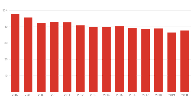 According to the Bureau of Statistics’ most recent count (in which small businesses are defined as those with fewer than 20 employees), they employed 4.67 million people as at the end of June 2020. That’s equivalent to 37.7% of total employment.