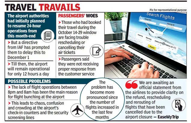 “As per information received from the Indian Air Force, the flight operations will continue only in a 12-hour window daily till December 1, after which round-the-clock flight service will begin,” Dhoke told TOI.