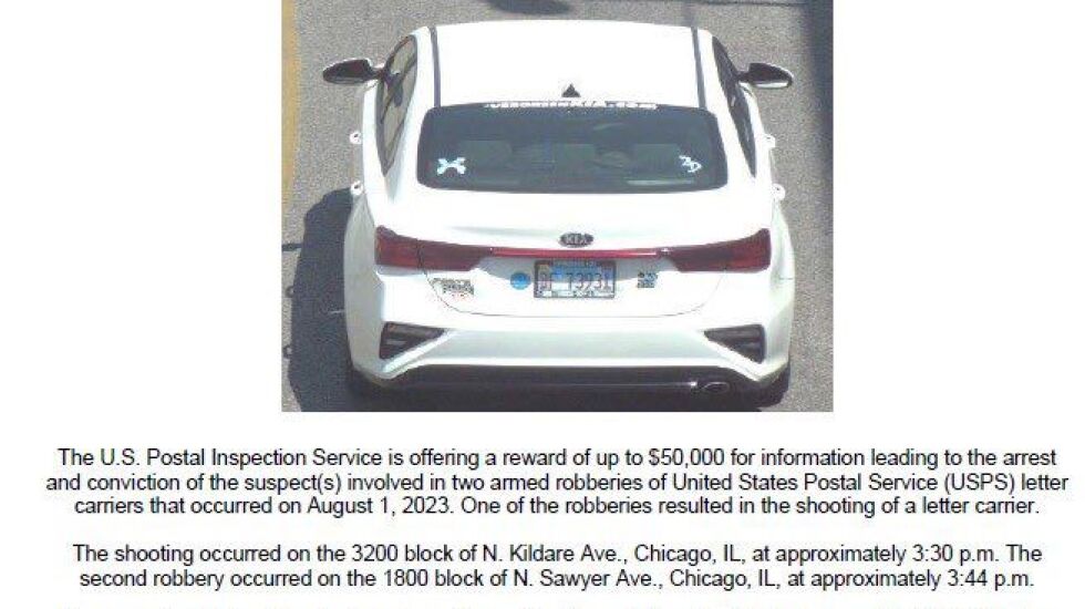 The U.S. Postal Service is offering a $50,000 reward after a mail carrier was shot during an attempted robbery in Chicago Monday and another carrier was robbed minutes later about three miles away.