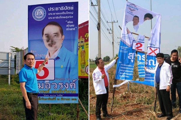 Chalong Khanlert, a candidate running in Kalasin's Constituency 1 under the banner of the Palang Pracharath Party (PPRP), lodged a complaint with Muang Kalasin police after several of his campaign posters put up in central Kalasin were vandalised.