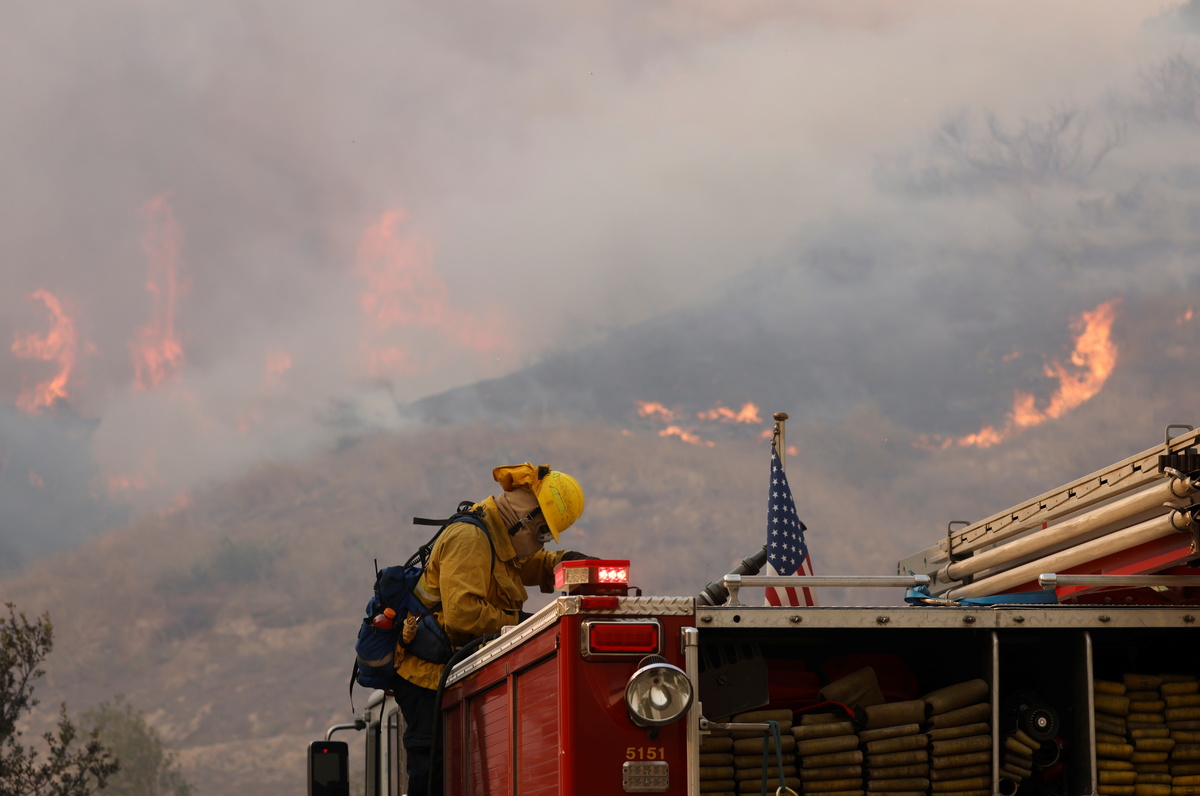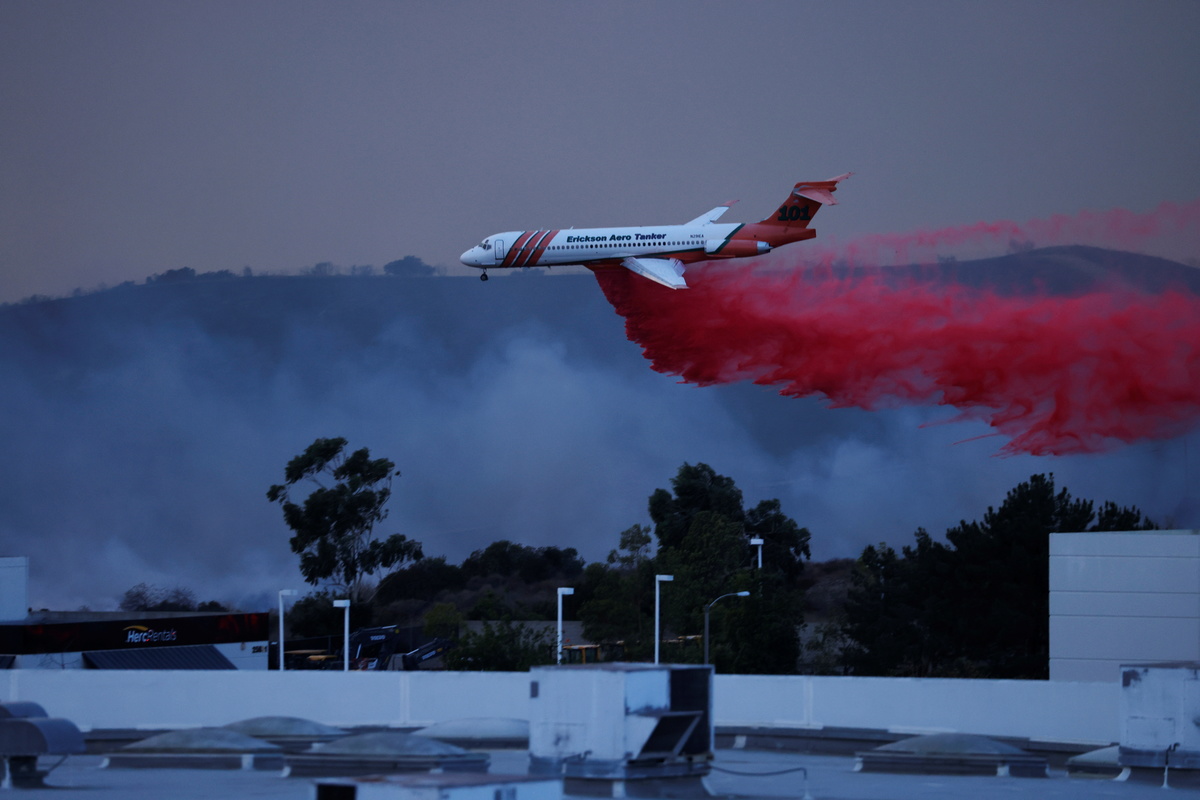 Some 90,800 residents were ordered evacuated from homes in and around the city of Irvine as the fire raged largely unchecked through drought-parched brush in the canyons and foothills of the Santa Ana Mountains south of Los Angeles, officials said.
