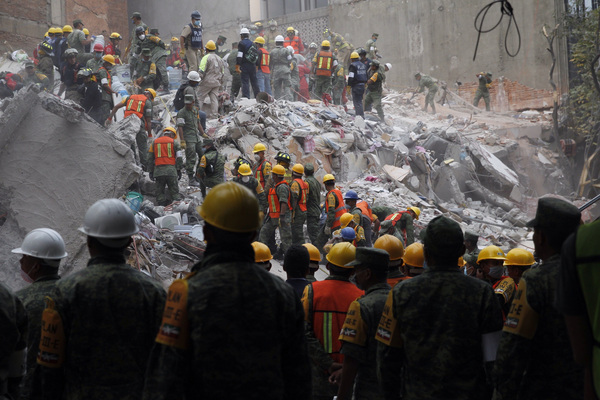 The earthquake struck on the anniversary of a 1985 temblor that killed thousands of people and devastated large parts of Mexico City _ a tragedy that President Enrique Pena Nieto commemorated earlier in the day.