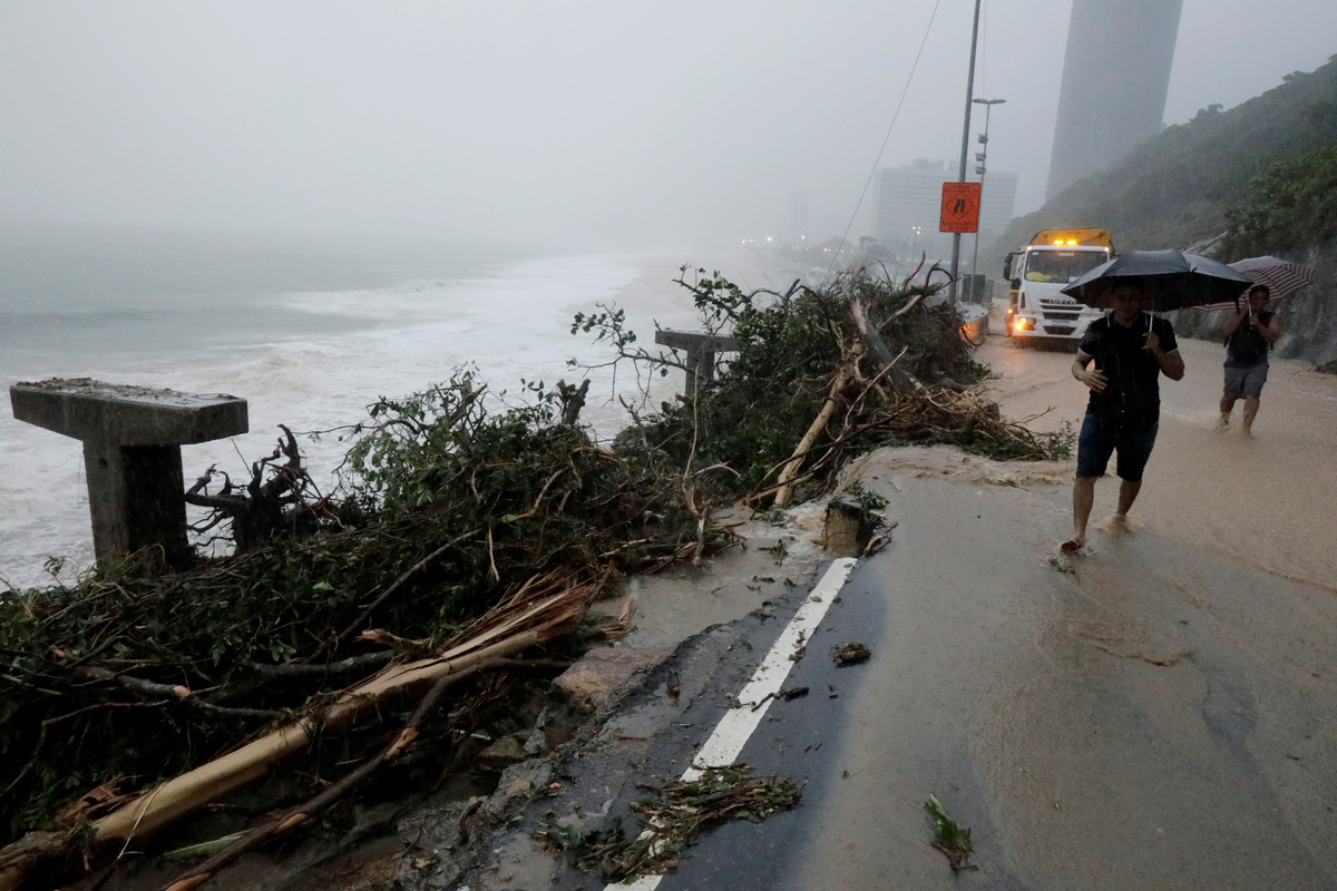 Videos on local news showed normally calm residential streets turned into raging torrents that dragged people and cars. A coastal bike path meant to be a legacy of the 2016 Olympics that had been weakened by previous storms suffered more damage, with chunks of the path falling into the sea.