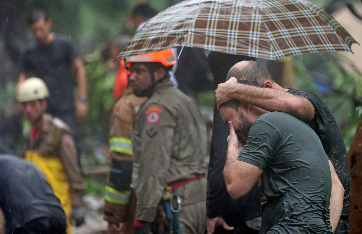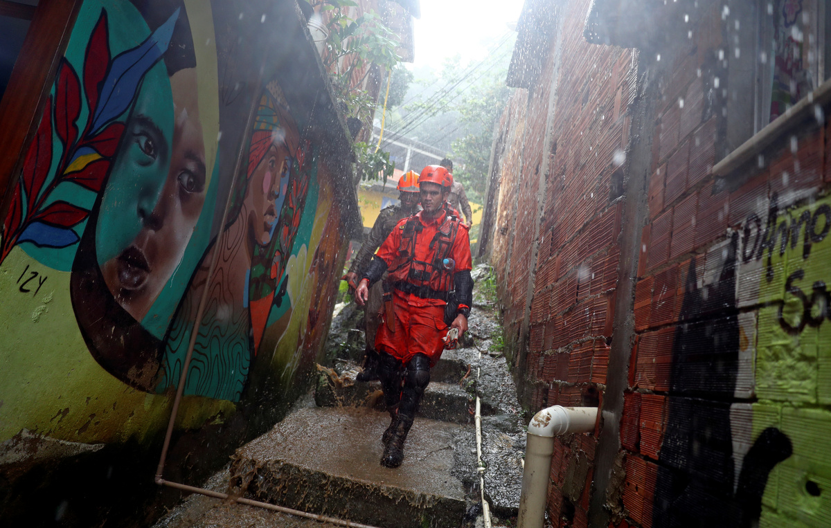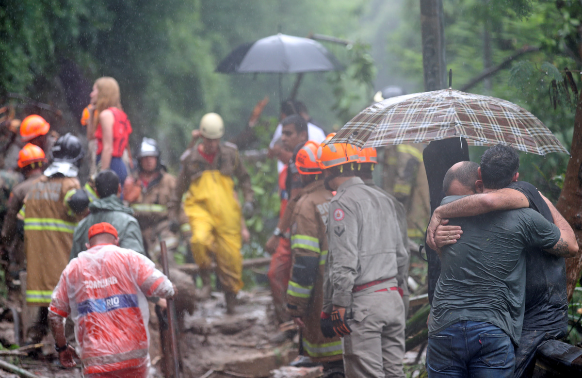 Rescue workers carry away bodies at the site of a mudslide, after heavy rains in Rio de Janeiro, Brazil, April 9, 2019. REUTERS/Ricardo MoraesA bus is seen underneath trees uprooted by heavy rains in the Leblon neighbourhood in Rio de Janeiro, Brazil April 9, 2019. REUTERS/Sergio Moraes A truck stuck at a flooded street during heavy rains in the Fazenda Botafogo neighbourhood in Rio de Janeiro, Brazil April 9, 2019. REUTERS/Ricardo MoraesRescue workers run towards the site of a mudslide after heavy rains, at the Babilonia slum in Rio de Janeiro, Brazil, April 9, 2019. REUTERS/Pilar OlivaresRescue workers are seen at the site of a mudslide after heavy rains, at the Babilonia slum in Rio de Janeiro, Brazil, April 9, 2019. REUTERS/Pilar OlivaresA relative of a missing person cries at the site of a mudslide after heavy rains, at the Babilonia slum in Rio de Janeiro, Brazil, April 9, 2019. REUTERS/Pilar OlivaresA boy plays on a flooded channel during heavy rains in the Fazenda Botafogo neighbourhood in Rio de Janeiro, Brazil April 9, 2019. REUTERS/Ricardo MoraesPeople look at the site of a mudslide after heavy rains, at the Babilonia slum in Rio de Janeiro, Brazil, April 9, 2019. REUTERS/Pilar OlivaresBoys are pictured at a flooded channel during heavy rains in the Fazenda Botafogo neighbourhood in Rio de Janeiro, Brazil April 9, 2019. REUTERS/Ricardo MoraesFirefighters work at the site of a mudslide after a heavy rain at the Babilonia slum in Rio de Janeiro, Brazil, April 9, 2019. REUTERS/Pilar OlivaresA man looks out the bus window during heavy rains in the Jardim Botanico neighborhood in Rio de Janeiro, Brazil April 9, 2019. REUTERS/Sergio MoraesA truck is seen stuck on a flooded street during heavy rains in the Jardim Botanico neighborhood in Rio de Janeiro, Brazil April 9, 2019. REUTERS/Sergio MoraesA truck is seen stuck on a flooded street during heavy rains in the Jardim Botanico neighborhood in Rio de Janeiro, Brazil April 9, 2019. REUTERS/Sergio MoraesA car is seen submerged during heavy rains in the Barra da Tijuca neighborhood in Rio de Janeiro, Brazil April 9, 2019. REUTERS/Sergio MoraesA car is seen stuck on a flooded street during heavy rains in the Jardim Botanico neighborhood in Rio de Janeiro, Brazil April 9, 2019. REUTERS/Sergio MoraesA man rides a motorbike on a flooded street during heavy rains in the Jardim Botanico neighborhood in Rio de Janeiro, Brazil April 9, 2019. REUTERS/Sergio MoraesA man rides a motorbike on a flooded street during heavy rains in the Jardim Botanico neighborhood in Rio de Janeiro, Brazil April 9, 2019. REUTERS/Sergio MoraesA car is seen stuck during heavy rains in the Gavea neighborhood in Rio de Janeiro, Brazil April 9, 2019. REUTERS/Sergio MoraesA car carrier truck transports a car during heavy rains in the Jardim Botanico neighborhood in Rio de Janeiro, Brazil April 9, 2019. REUTERS/Sergio MoraesA car is seen stuck on a flooded street during heavy rains in the Gavea neighborhood in Rio de Janeiro, Brazil April 9, 2019. REUTERS/Sergio MoraesA traffic jam is seen on a flooded street during heavy rains in the Jardim Botanico neighborhood in Rio de Janeiro, Brazil April 9, 2019. REUTERS/Sergio MoraesResidents walk holding onto a fence next to a flooded street during heavy rains in the Jardim Botanico neighborhood in Rio de Janeiro, Brazil April 9, 2019. REUTERS/Sergio MoraesA traffic jam is seen on a flooded street during heavy rains in the Jardim Botanico neighborhood in Rio de Janeiro, Brazil April 9, 2019. REUTERS/Sergio MoraesResidents walk holding onto a fence next to a flooded street during heavy rains in the Jardim Botanico neighborhood in Rio de Janeiro, Brazil April 9, 2019. REUTERS/Sergio MoraesPeople walk at the Niemeyer avenue during heavy rains near Sao Conrado beach in Rio de Janeiro, Brazil April 9, 2019. REUTERS/Sergio MoraesA taxi is seen in the entrance of Niemeyer avenue during heavy rains near Sao Conrado beach in Rio de Janeiro, Brazil April 9, 2019. REUTERS/Sergio MoraesA tractor works at the Niemeyer avenue during heavy rains near Sao Conrado beach in Rio de Janeiro, Brazil April 9, 2019. REUTERS/Sergio MoraesThe collapsed area of a cycle lane is seen during heavy rains at Niemeyer avenue near Sao Conrado beach in Rio de Janeiro, Brazil April 9, 2019. REUTERS/Sergio MoraesThe entrance of Niemeyer avenue is seen during heavy rains near Sao Conrado beach in Rio de Janeiro, Brazil April 9, 2019. The sign reads: "Niemeyer anevue closed." REUTERS/Sergio MoraesA man walks next to the collapsed area of a cycle lane during heavy rains at Niemeyer avenue near Sao Conrado beach in Rio de Janeiro, Brazil April 9, 2019. REUTERS/Sergio MoraesA tractor is seen during heavy rains at Niemeyer avenue near Sao Conrado beach in Rio de Janeiro, Brazil April 9, 2019. REUTERS/Sergio MoraesPeople are seen on a street filled with mud during heavy rains in the Jardim Botanico neighborhood in Rio de Janeiro, Brazil April 9, 2019. REUTERS/Lucas Landau
