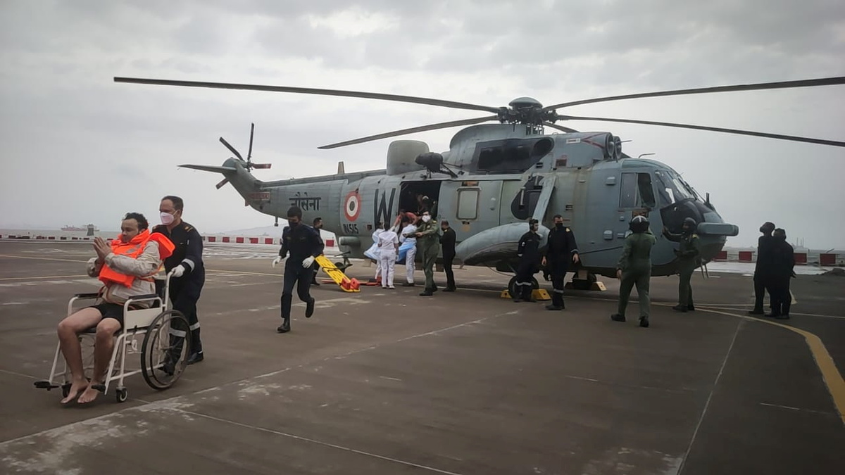 On Monday, the crew sent an SOS that the ship had lost control as the cyclone roared past Mumbai. Naval ships were sent to the area and on Tuesday, as the barge started sinking, many of the crew were rescued from the sea.