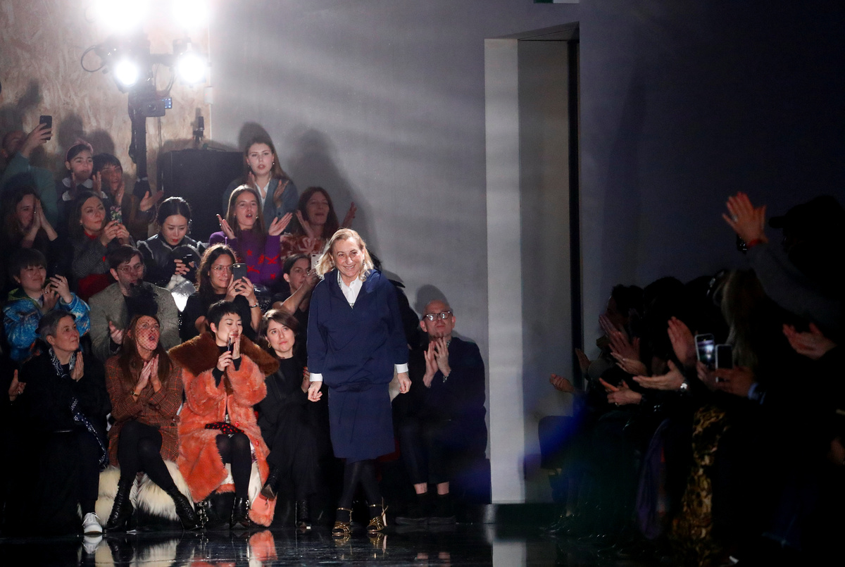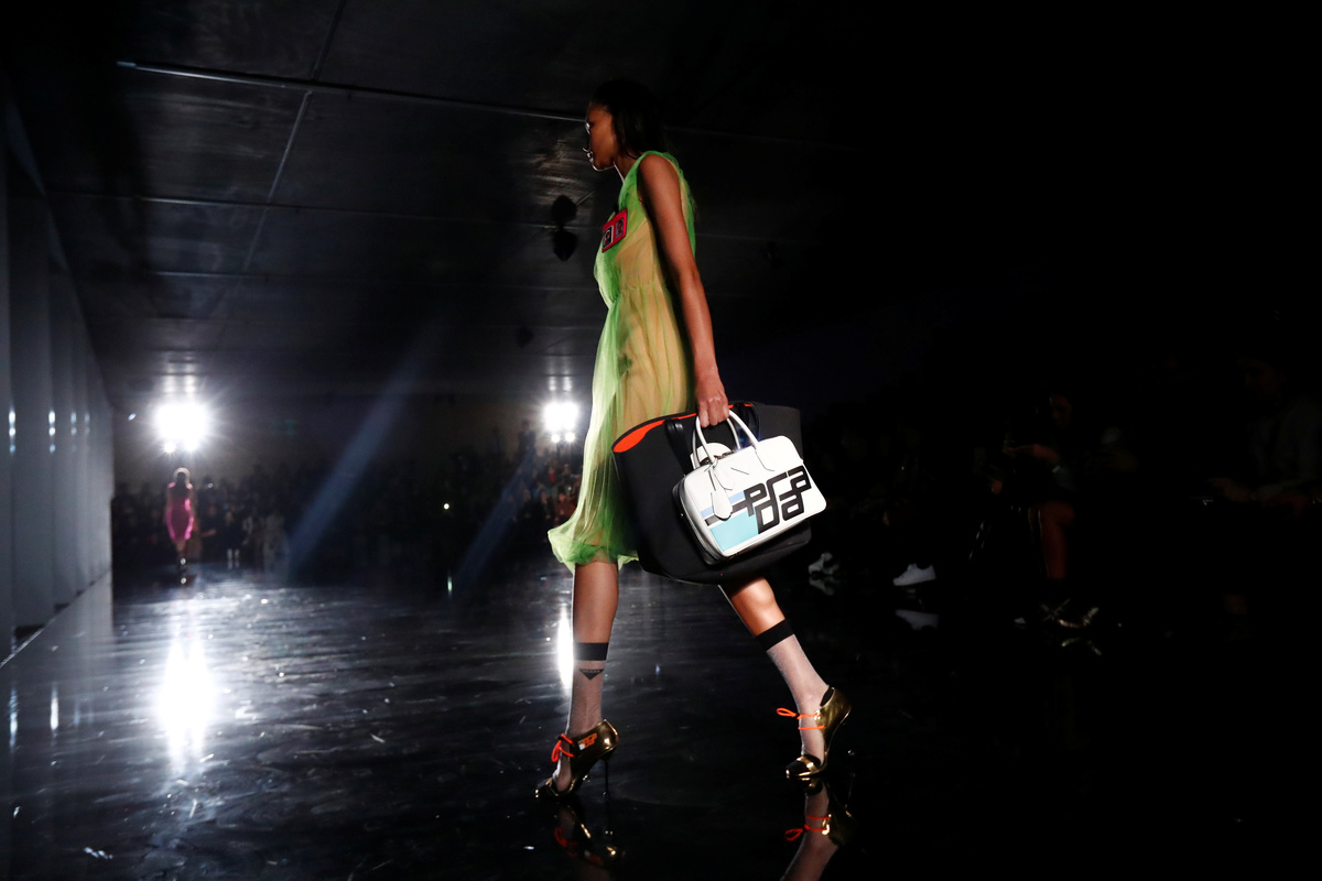 MILAN (Reuters) - With Milan at her feet, designer Miuccia Prada unveiled her fluorescent and urban chic fall-winter collection on Thursday, in a high rise building towering over Italy's fashion capital.