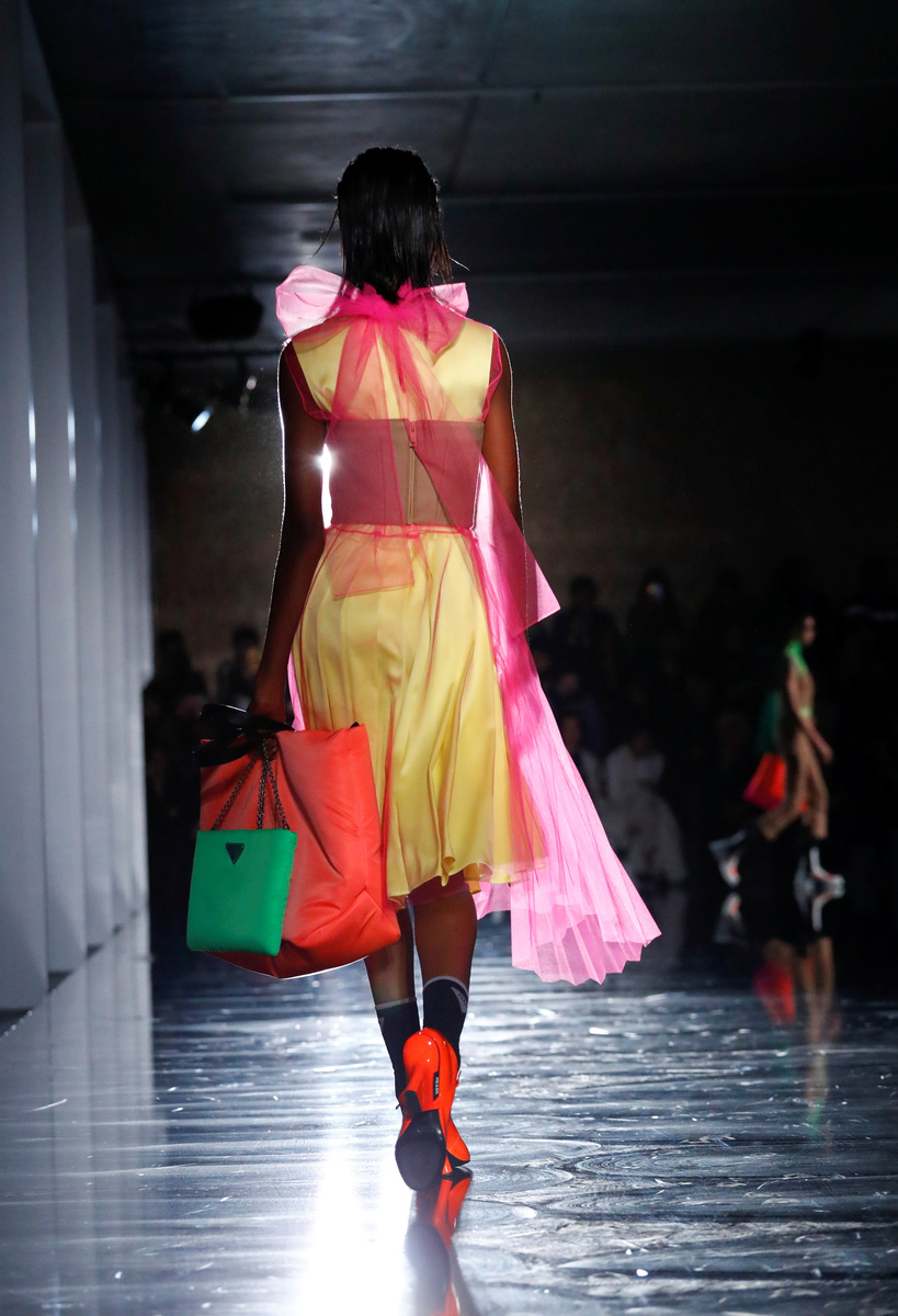 Prada, who is also co-chief executive of the eponymous luxury group, used Milan Fashion Week to continue her exploration of different facets of femininity, with designs that stood out with their bold colors and stark lines.