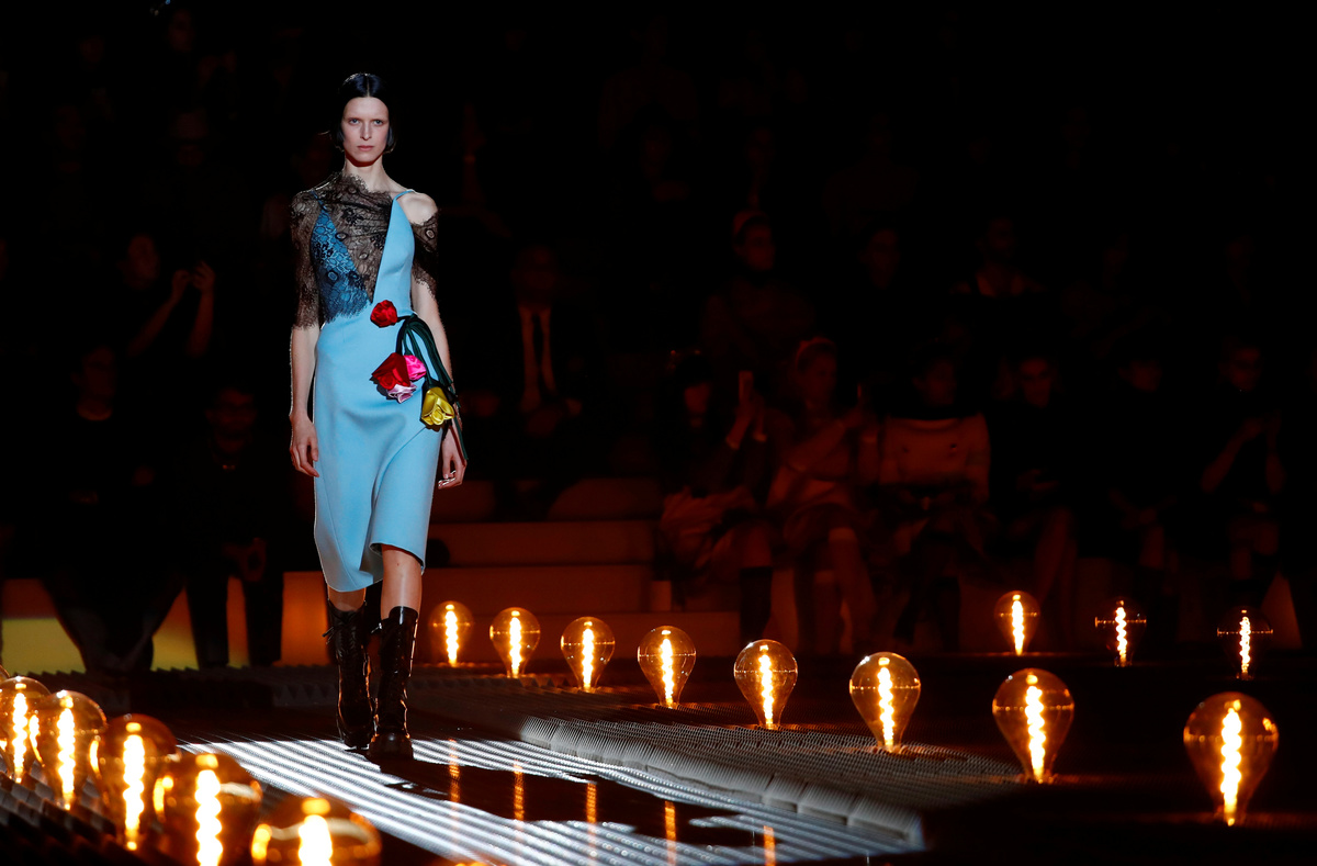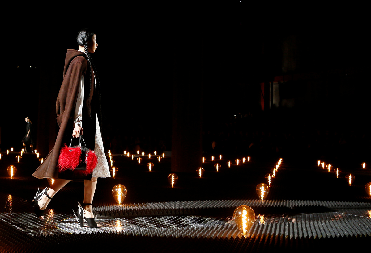 MILAN (Reuters) - Italian luxury label Prada added a touch of romance to Milan Fashion Week on Thursday with a winter collection looking at both sides of a love story.