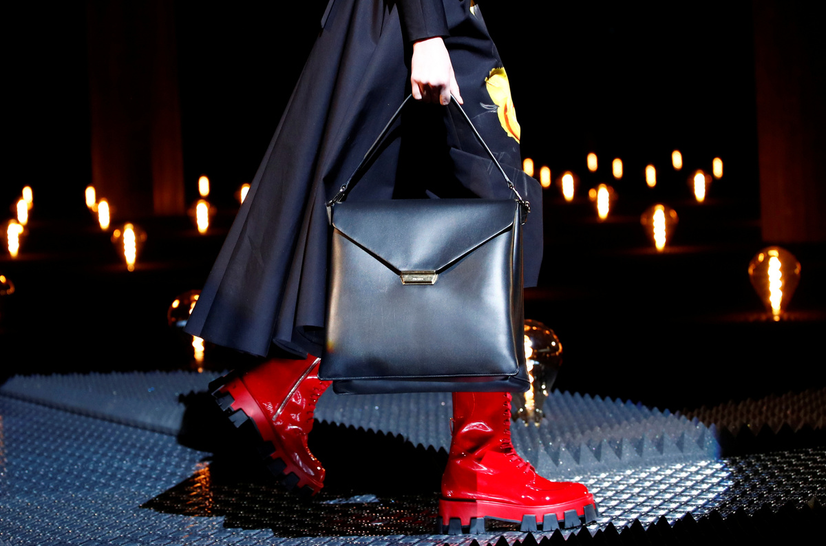 Footwear consisted of chunky high lace up boots as well as sparkly sandals. Colorful furry trims adorned backpacks and handbags, staples of the brand founded in 1913.