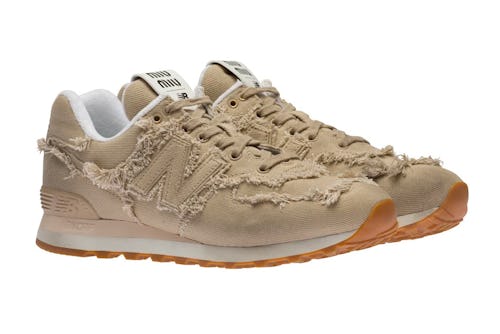 Miu Miu and New Balance have opened up pre-orders for their 574 sneaker, bringing a master class in texture to the classic silhouette. As first shown at Paris Fashion Week last fall, Miu Miu’s take on the sneaker adds raw seams to a trio of tasteful color schemes. Loose threads are everywhere, but look past the fray and you’ll see that the upper is constructed with denim instead of the typical suede.