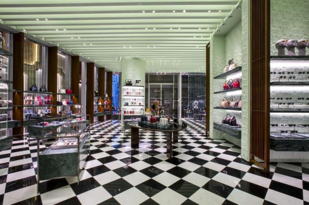 Under the new store concept, furniture from Miuccia Prada's private collection have been shipped to Bangkok and placed on the black-and-white marble chequered floor.