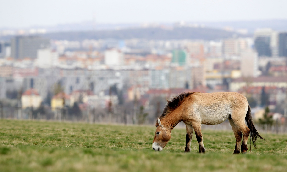 "This whole project aims to recreate a steppe environment here with its original fauna and flora with the horses' help," Prague Zoo Director Miroslav Bobek said on Thursday as the four mares grazed with the city in the background.