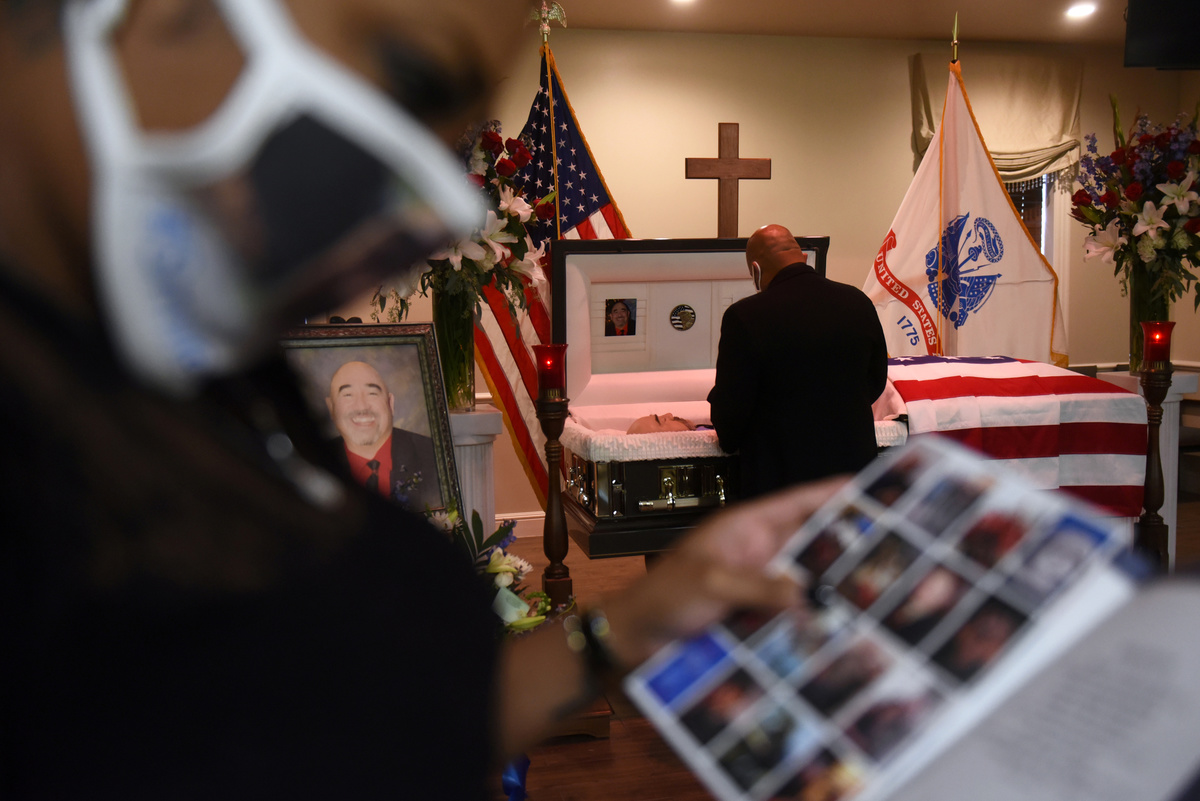At David's wake, a bottle of hand sanitizer and social distancing signs were prominently displayed as masked mourners walked to the casket to bid their farewells.