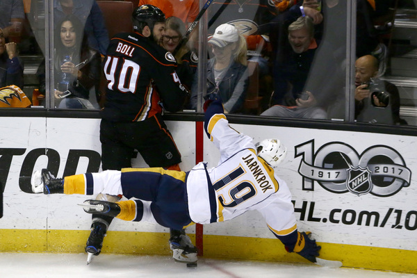 In a dominating opening half to the first period, Nashville racked up 13 shots to the Ducks' one. And it got a deflection goal from skilled scorer Filip Forsberg at the 12:34 mark. All it did was get them tied as the Ducks' Jakob Silfverberg scored on their only shot, a wicked wrister that flew past Rinne.