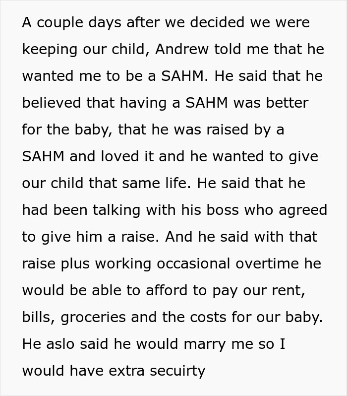 Unfortunately, a newly pregnant woman who had no intention of being a stay-at-home mom was faced with the choice when her boyfriend suddenly told her that’s what he wanted.
