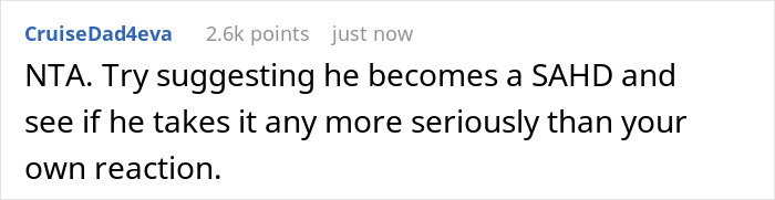 Moms who choose not to stay at home have observed that the most backlash they receive for their decision comes from males. Men who were raised by mothers who gave up everything to be with them also expect the same from their wives. This is an unfair ask. As the commenters pointed out, maybe the poster should have turned the tables on Andrew and asked him to be a stay-at-home dad instead.