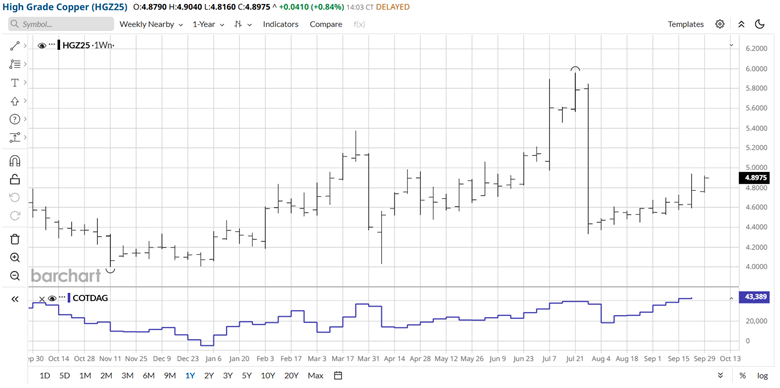 As we enter fall 2025, copper presents a compelling opportunity for traders, underpinned by robust seasonal and fundamental drivers. The anticipated rally, fueled by home builders stockpiling for spring construction and a projected 4% rise in U.S. housing starts for 2026, aligns with a global supply deficit of 300,000 metric tons, driven by production challenges in Chile and Peru. Low LME inventories and growing demand from the energy transition—spanning electric vehicles, solar, and AI-driven data centers—further tighten the market, setting the stage for price volatility and potential gains. Traders can capitalize through CME Group Exchange futures, options, or leveraged exposure via copper miner stocks like Freeport-McMoRan or the COPX ETF. The historical 93% success rate of copper prices closing higher from October to November, as noted by MRCI, reinforces this seasonal window, with recent technical breakouts and bullish managed money positions in the COT report signaling momentum.