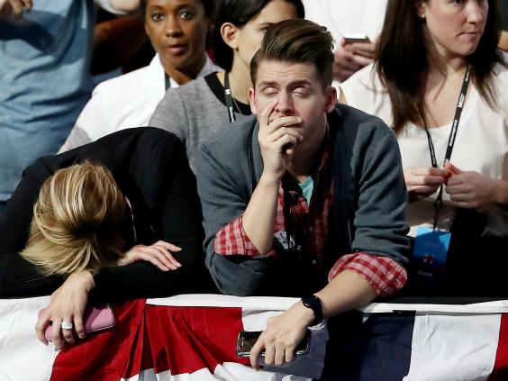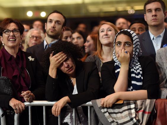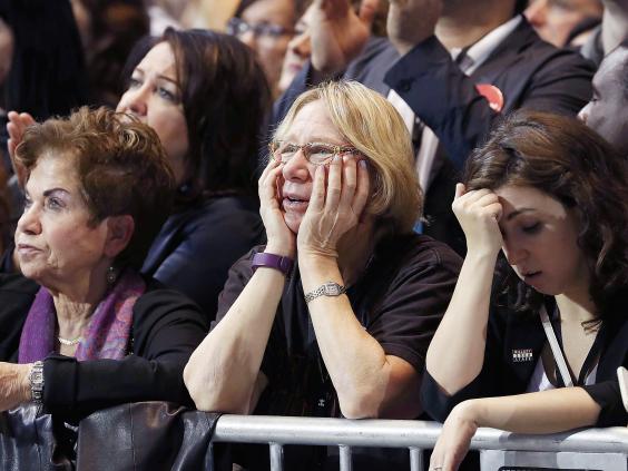 With election night underway, Clinton supporters watch on despairingly at her election night rally in Manhattan as the results come in.