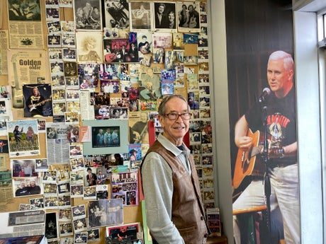 Stuck next to the doorway in the entrance of his shop is a life-size photograph of Pence playing that same guitar when he was governor of Indiana, taken at a concert in honour of Pickett’s service to the town. Pickett has dutifully followed the progress of his former student in the years after he left Columbus. From his time as a popular local talk radio host, to Congress, on to the Indiana governor’s mansion and finally to the White House. Needless to say, he is a fan.