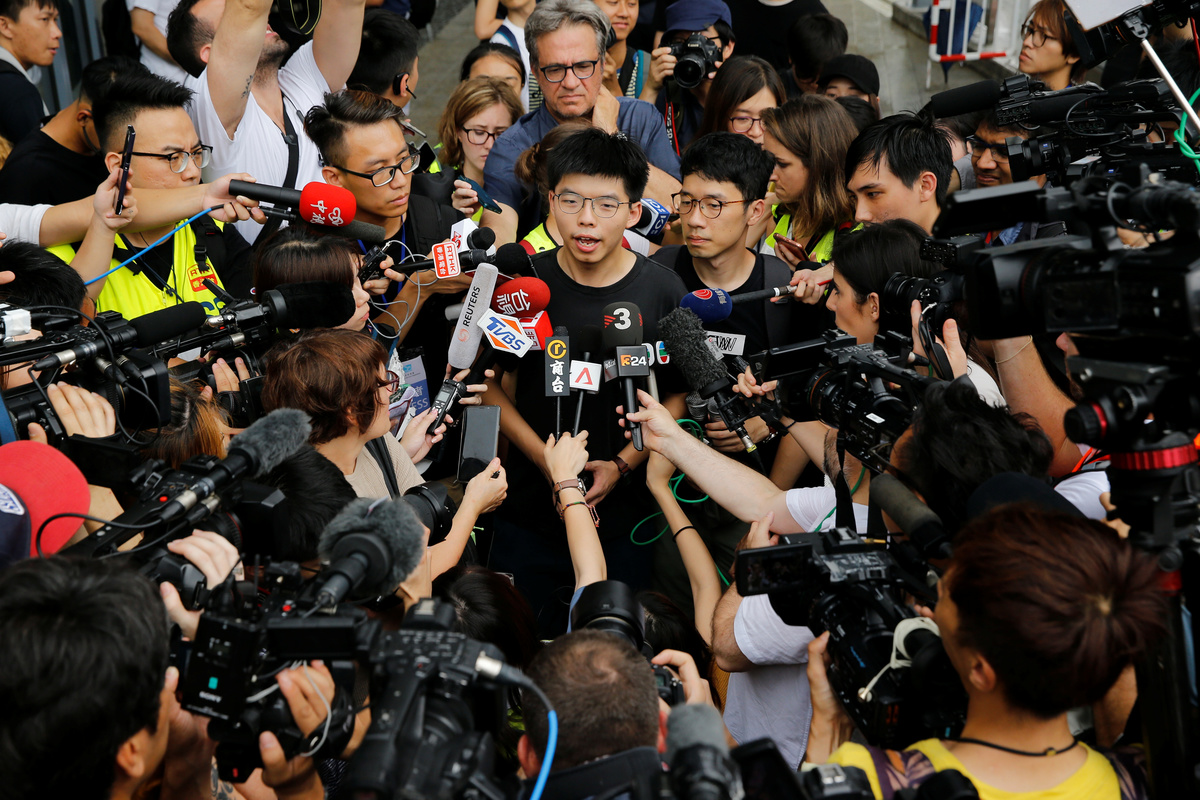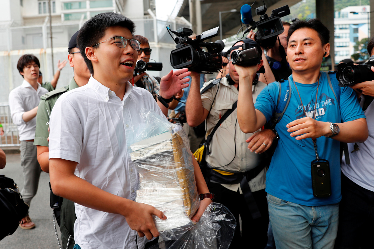 In a coincidence of timing, 22-year-old Joshua Wong, the face of Hong Kong's push for full democracy, walked free from prison on Monday.