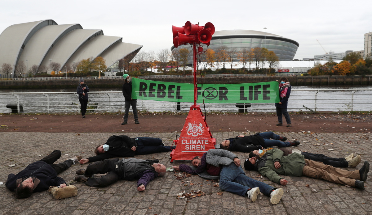 To increase pressure for a strong deal, protesters rallied outside the COP26 venue, where activists had hung ribbons with messages imploring delegates to protect the Earth.