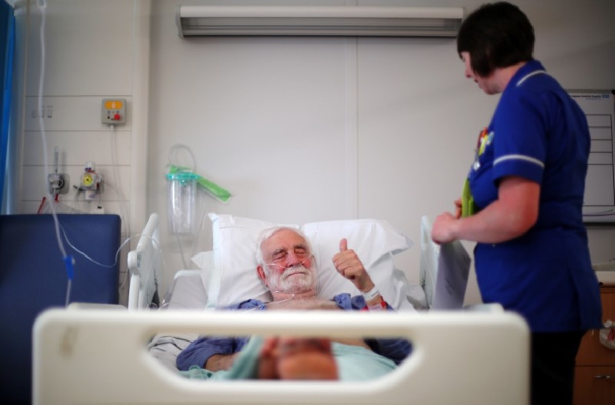 Inpatient Donald Ritson lies in bed in Ward 24 in Milton Keynes University Hospital in Milton Keynes, central England, Britain, May 22, 2018. "I've had so many things go wrong with my body in the last four-and-a-half years that it's just incredible that one organisation can cure so many things and treat me so kindly, efficiently, and for free. It's just astonishing,Ó said Ritson. He remembers what it was like before the state-funded NHS, when healthcare was beyond the reach of many people because they could not afford to pay doctors' fees. "I can remember my brother being ill and my parents being unable to afford to go to a doctor, so they tried to treat it themselves," he recalled. "We could never go back to that sort of system. Cradle to grave, it's not a bad idea." REUTERS/Hannah McKay