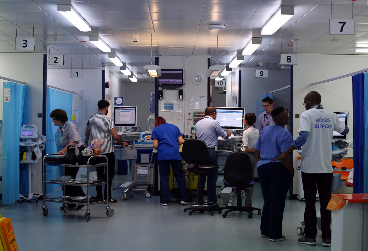 Hospital workers communicate to each other in Ward 8 at Milton Keynes University Hospital in Milton Keynes, central England, Britain, May 23, 2018. REUTERS/Hannah McKay